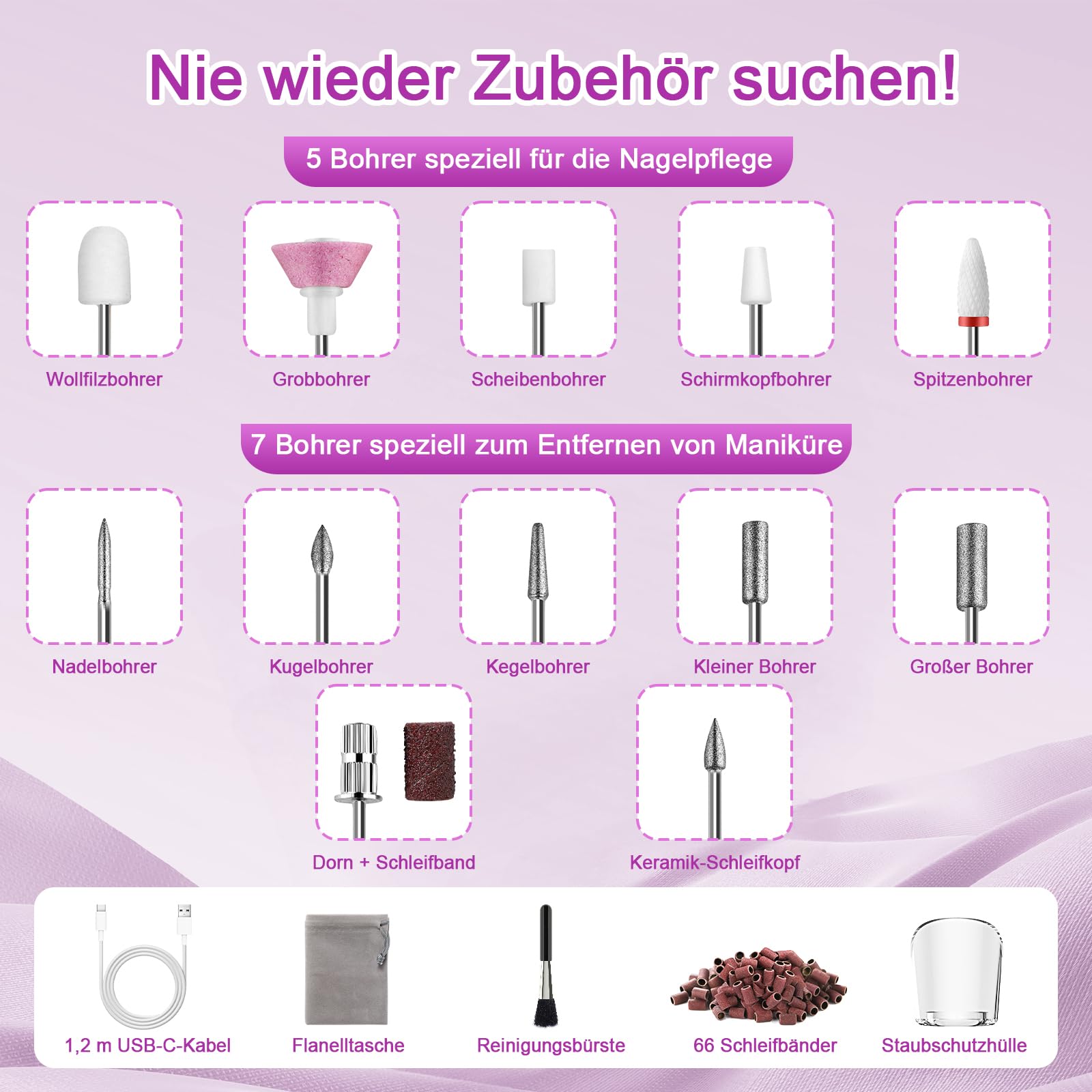 - Anwendung: Schleifen, Abtragen, Polieren und Entfernen von Gel Nagellack