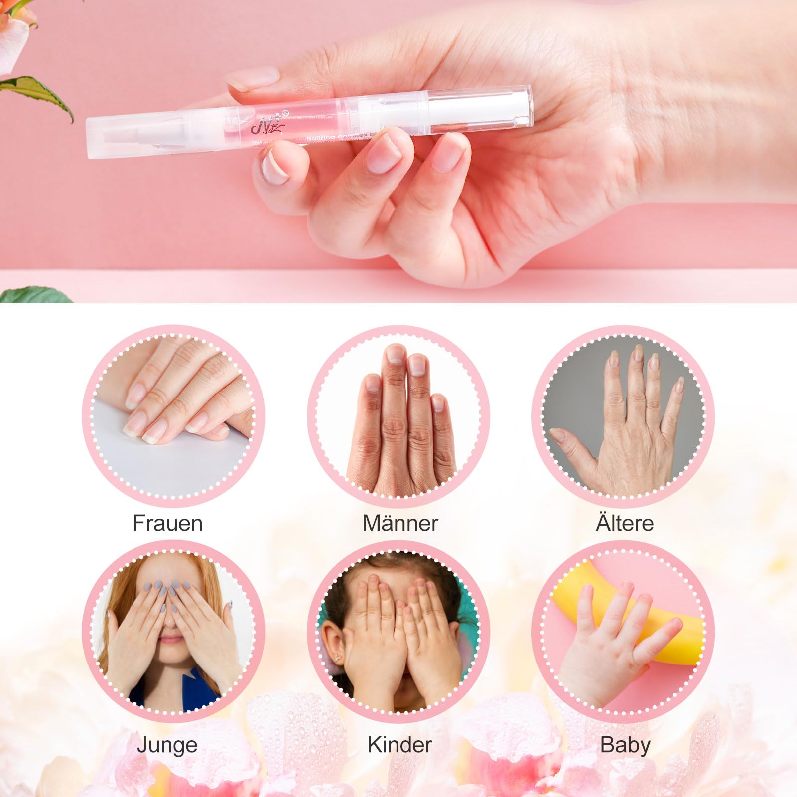 Die Nail Oil Pens sind in praktischer Stiftform gestaltet und ermoeglichen eine gezielte, saubere Anwendung ohne Verschwendung. Je nach gewaehltem Set enthaelt die Verpackung 5, 10 oder 15 Nagelhautoel Stifte mit unterschiedlichen Duftvarianten. Die Oele unterstuetzen ein gepflegtes Erscheinungsbild der Naegel und tragen bei regelmaessiger Anwendung zu geschmeidiger Nagelhaut bei.