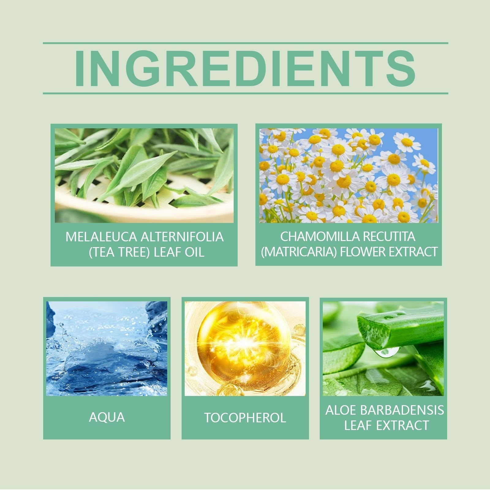 - Natürliche Inhaltsstoffe wie Teebaumöl, Vitamin E, Aloe Vera und Pfefferminzextrakt
