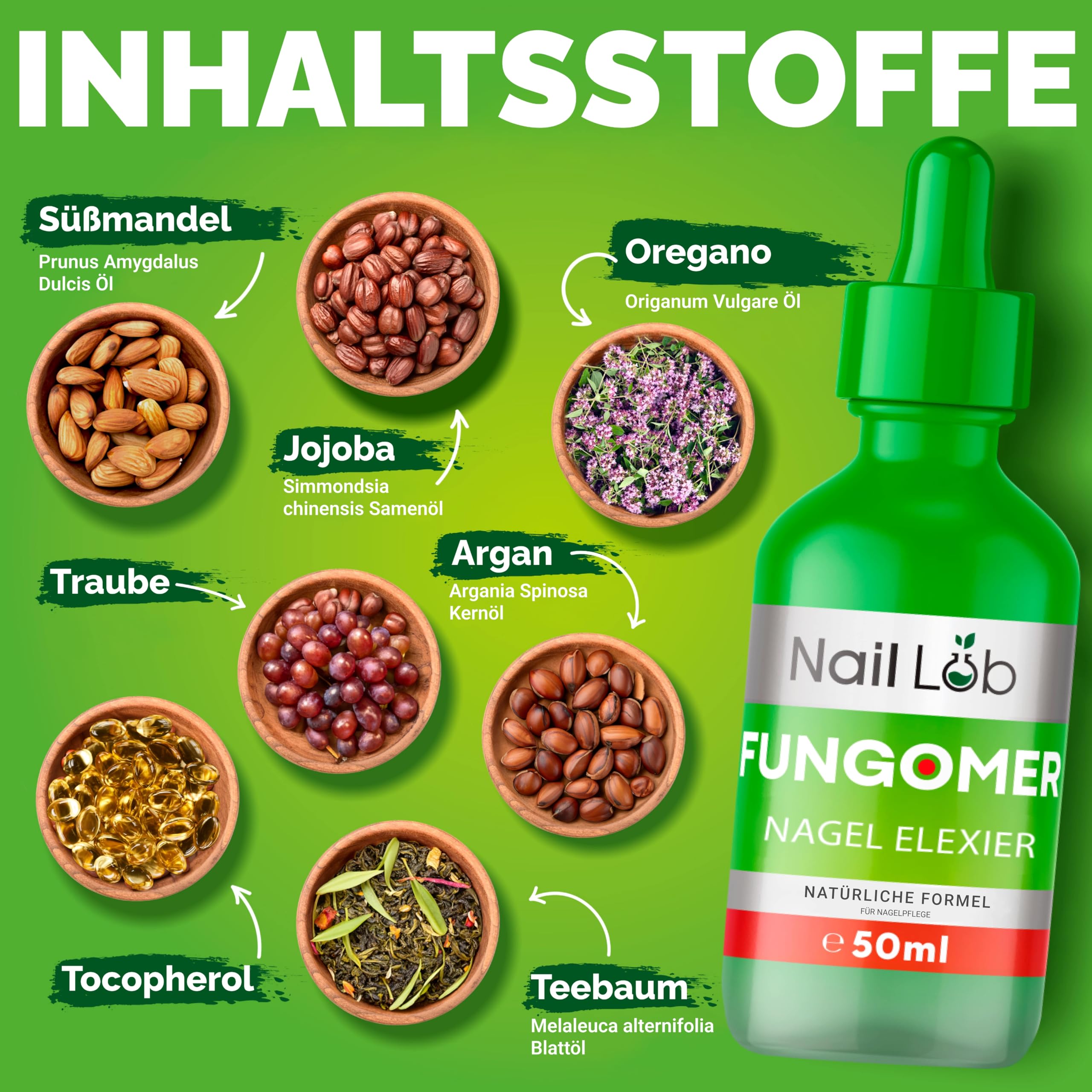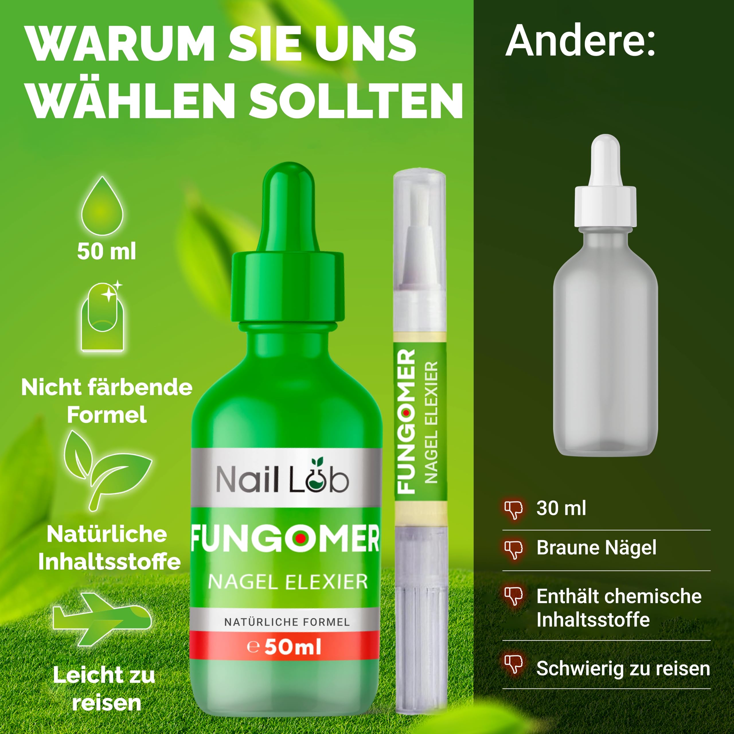 NAIL LAB Fungomer Nagel-Elixier – Repariert beschädigte und verfärbte Nägel, 50ml, Extra Stark mit Teebaumöl, für Finger- und Zehennägel