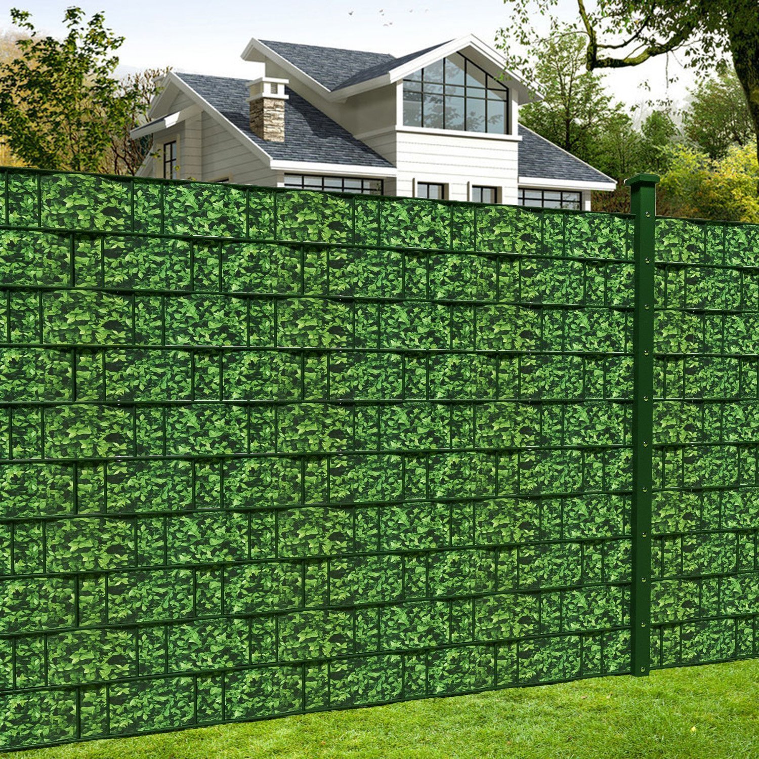 NAIMORUI PVC Sichtschutzfolie Sichtschutzstreifen Garten Sichtschutz Zaun Inkl. 20 x Befestigungsclips 450g/m² - Doppelstabmatten für Gartenzaun - (19cm*35m Buchsbaum)