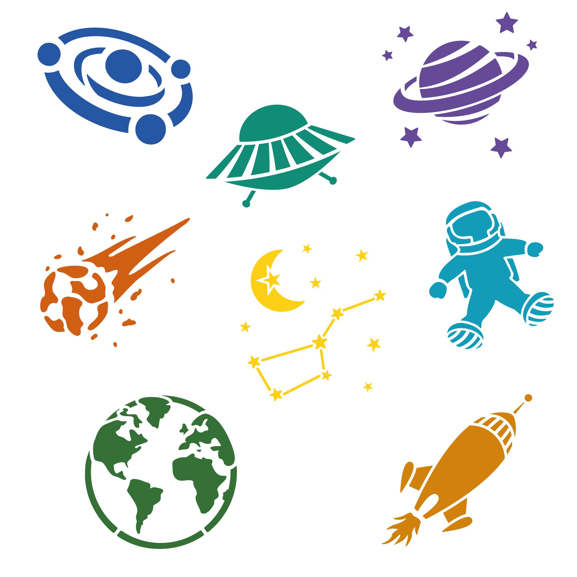 NAKLEO Schablonen Malen für Kinder, 8 Stück Set 15x15cm Kosmos Universum, Kinder Kreatives Zeichenschablonen, Kunststoff Wiederverwendbar Malschablone DIY Handwerk, Papier Wand Holz Stoff