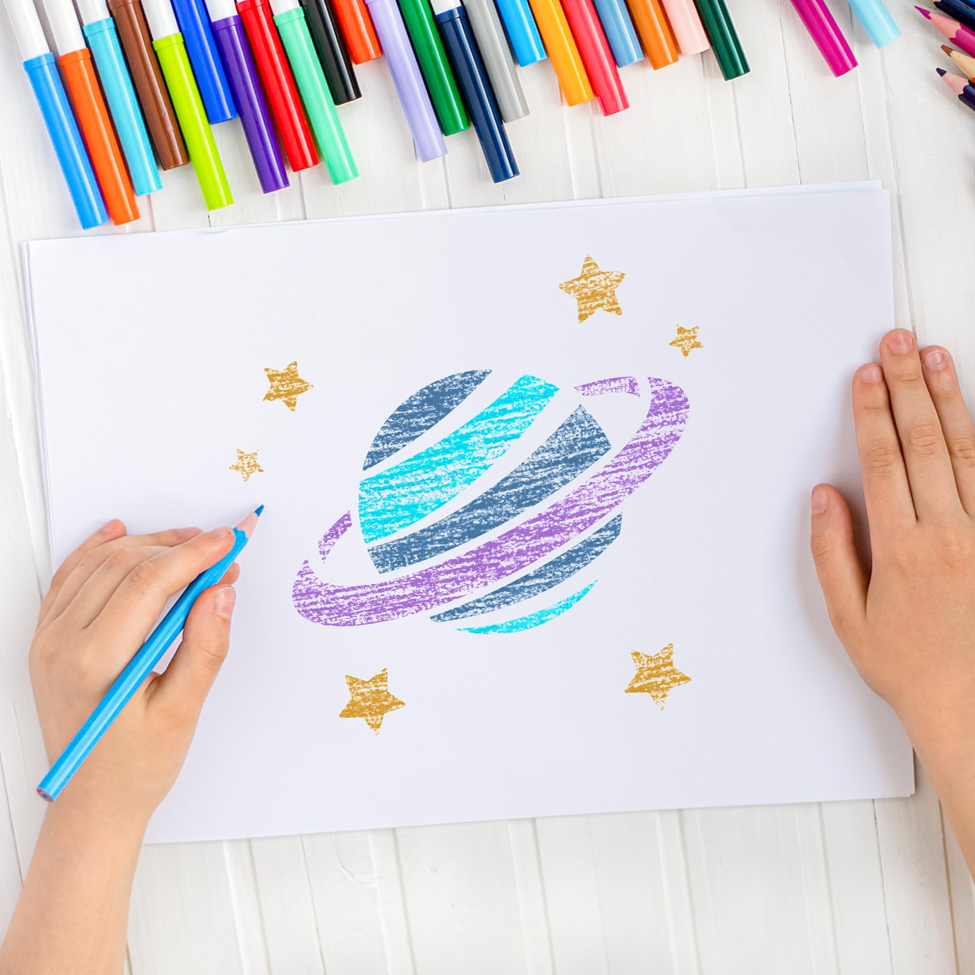 Die Nakleo Creative Kids Kollektion ist eine Reihe von Zeichenschablonen, die Kindern helfen, ihr künstlerisches Talent zu entwickeln. Sie sind langlebig, flexibel und farbenfroh und bestehen aus kindersicherem Kunststoff, so dass sie viele Stunden des kindlichen Spiels überstehen. Jedes Set besteht aus 8 wiederverwendbaren Blättern im Format 15x15 cm. Mit Hilfe unserer Produkte wird Ihr Kind nicht nur seine Phantasie, sondern auch seine Kreativität entwickeln. Tiere, magische Kreaturen, Eroberung des Kosmos oder vielleicht eine Expedition in die Savanne? Jedes Kind wird seine Lieblingsmotive finden. Die Zeichen- und Malschablonen helfen Ihrem Kind, schöne Bilder zu gestalten. Ein Set aus 8 orangefarbenen und blauen Blättern mit verschiedenen Mustern regt die Fantasie der Kleinen an und bereitet ihre Hand auf das Schreibenlernen vor. Das kreative Spiel mit unseren Produkten kann zu einem einfachen und angenehmen Training der kleinen motorischen Fähigkeiten der Kinder werden. Die Schablonen können immer wieder verwendet werden, so dass sie zu einer perfekten Unterhaltung für viele Stunden werden. Das Malen mit Farben, Markern oder Buntstiften wird sehr einfach und macht Spass. Eine breite Palette von Themen sorgt dafür, dass jeder etwas für sich findet, ob ein zukünftiger Astronaut oder eine kleine Prinzessin.