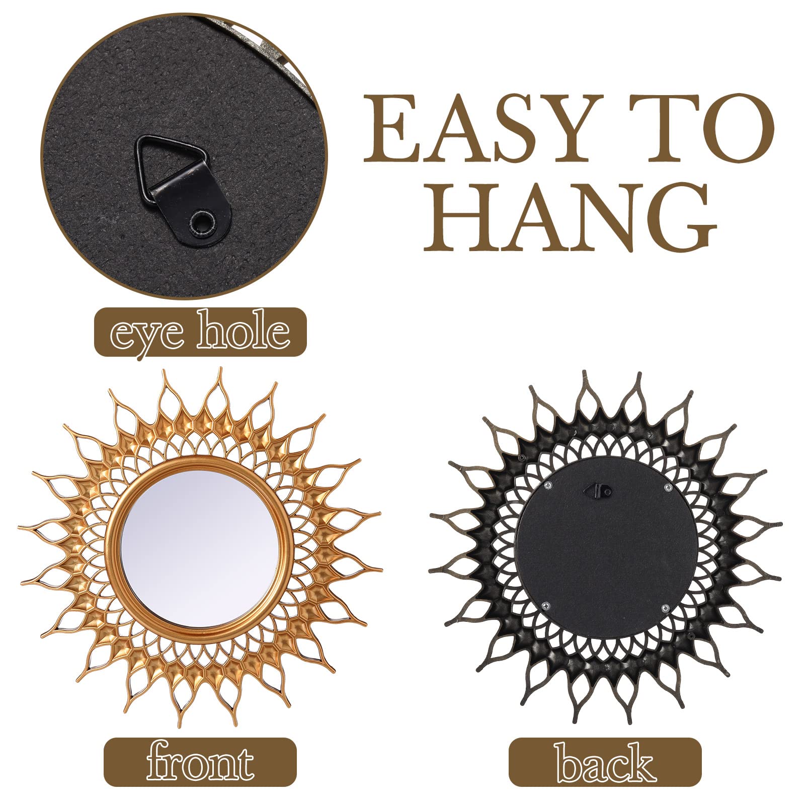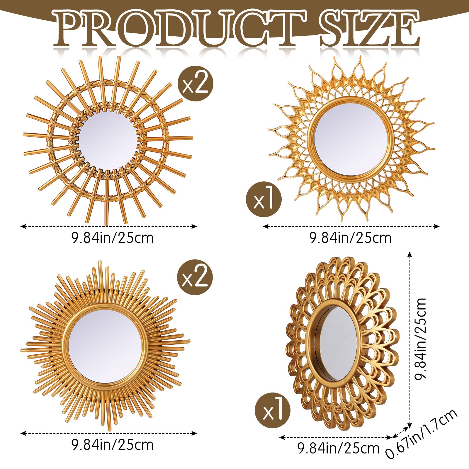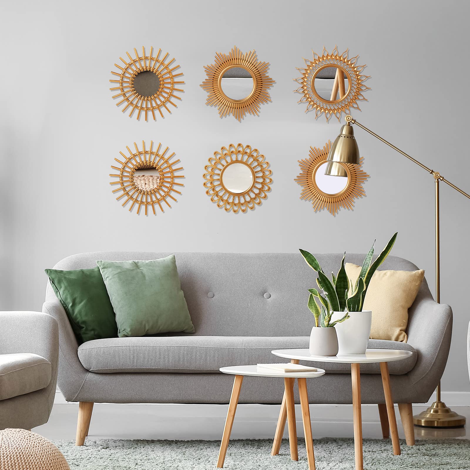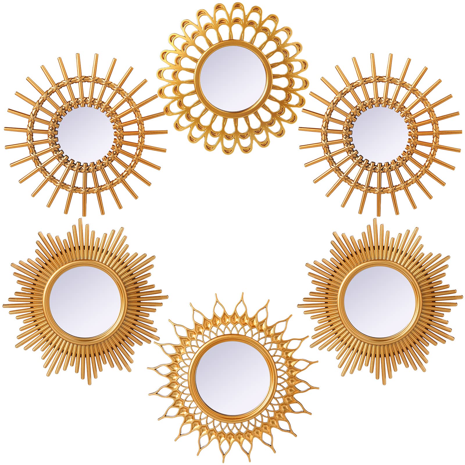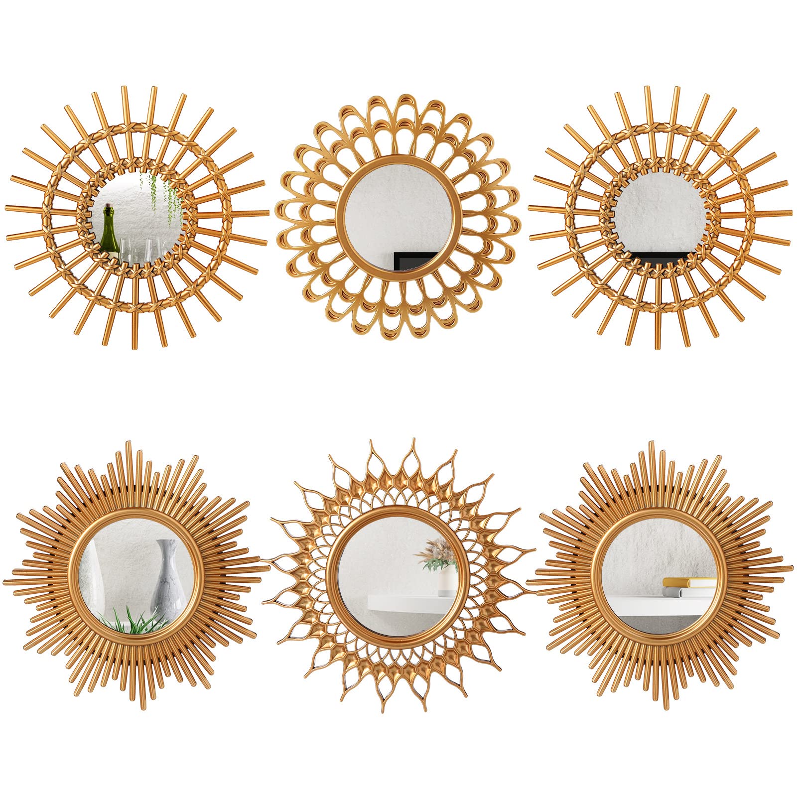 Namalu dekorative Spiegel, kleine runde Sonnen-Spiegel zur Wanddekoration im Flur, Bad, Schlafzimmer und Wohnzimmer, klassisch Goldfarben, 6 Stück