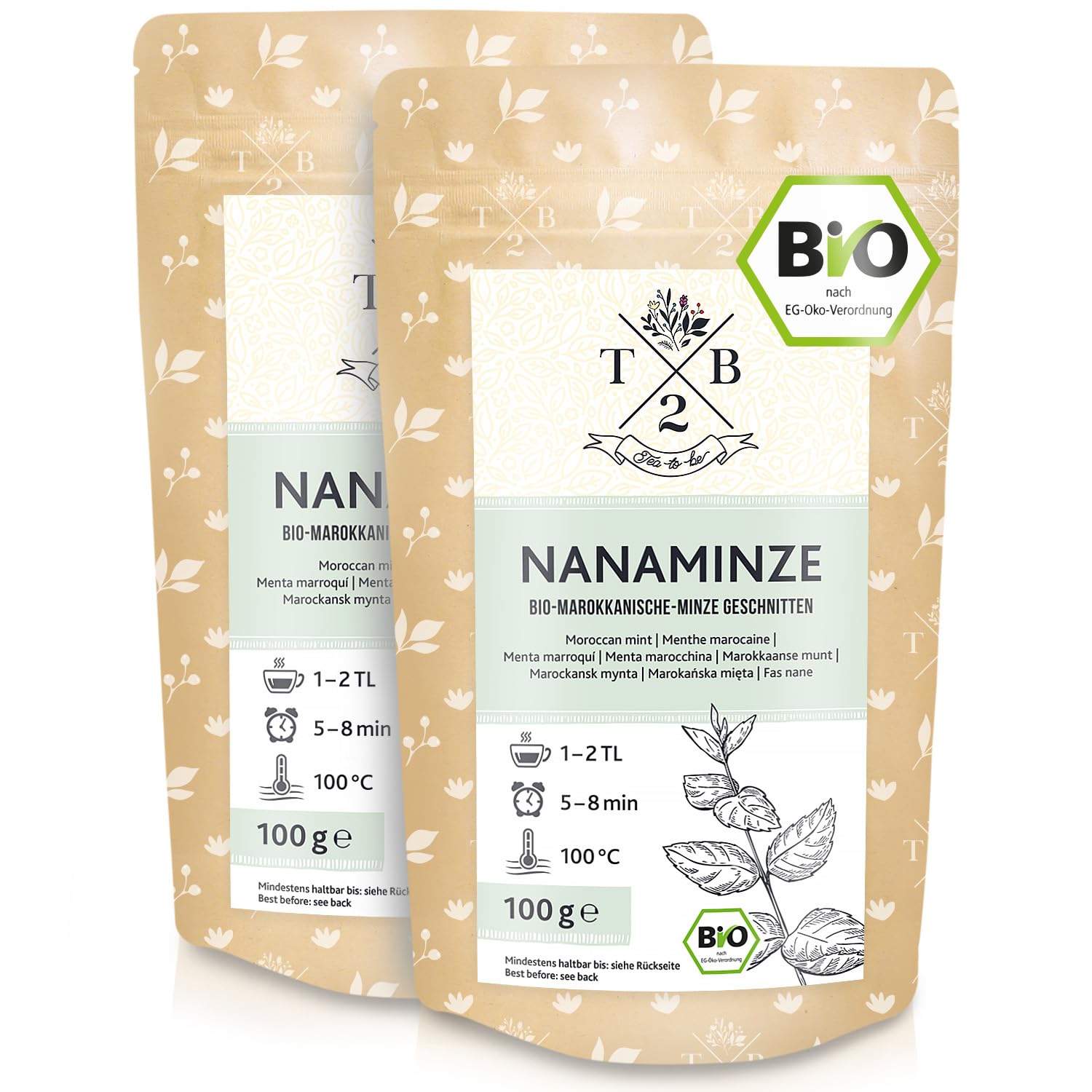 T2B Nanaminze, Nana-Minze Bio geschnitten – Marokkanischer Minztee – Vorratspack 2×100 g