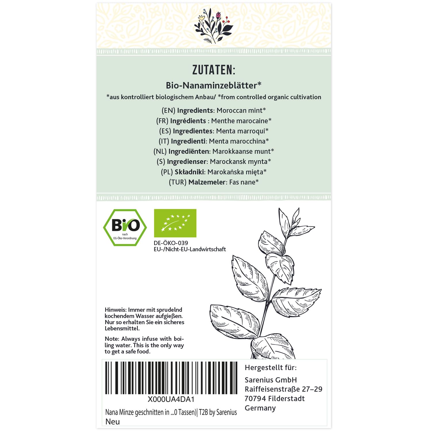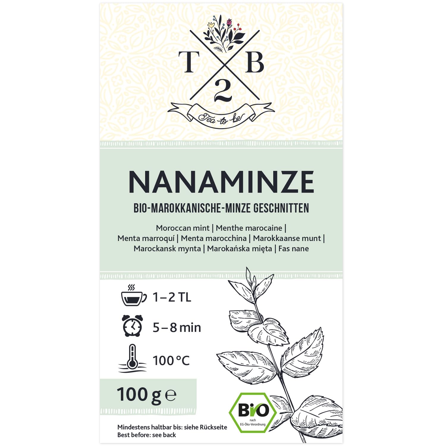 Nana-Minze BIO-Tee geschnitten in Bio-Qualität mit loser Nanaminze (Spearmint, marokkanische Minze),100g | Tea2Be