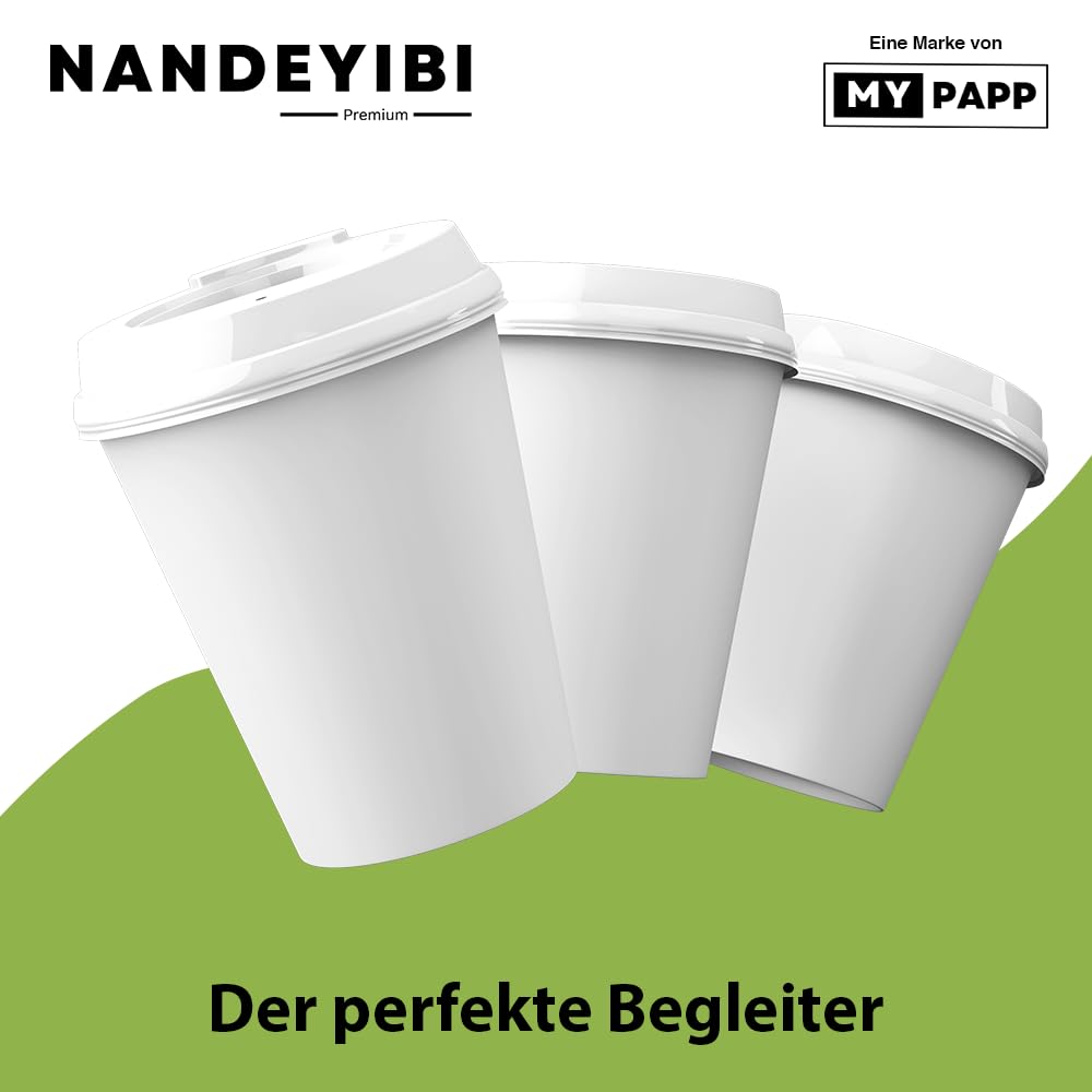 NANDEYIBI 200 Stk. Pappbecher weiss 200 ml - 8oz - Coffee to go | Einweg Kaffeebecher & Papierbecher, Partybecher, Bastelbecher | Trinkbecher für Heiss- & Kaltgetränke | Teebecher – Made in Germany