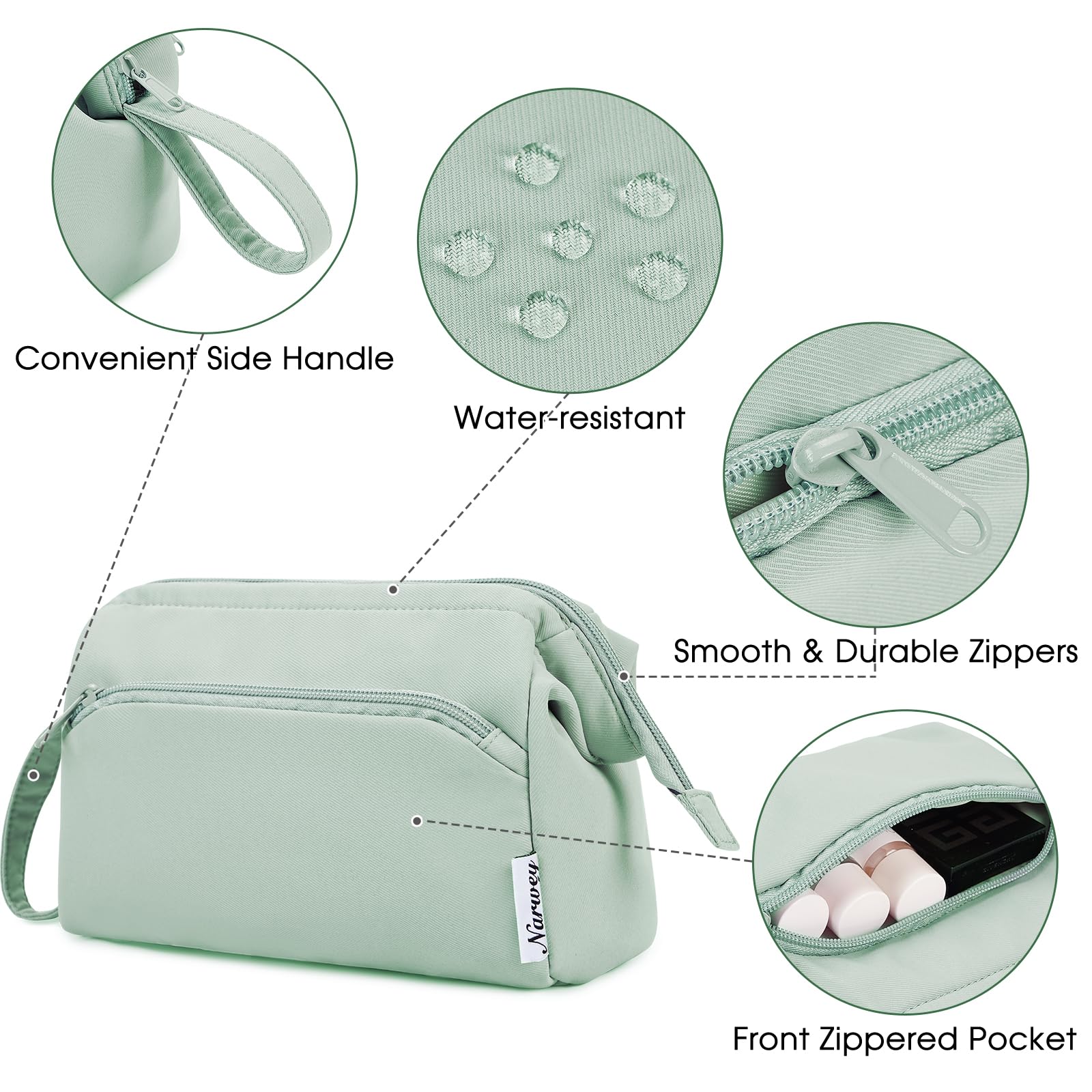Narwey Kulturtasche für Damen – Geräumige Reise-Kosmetiktasche mit weiter Öffnung, Minzgrün