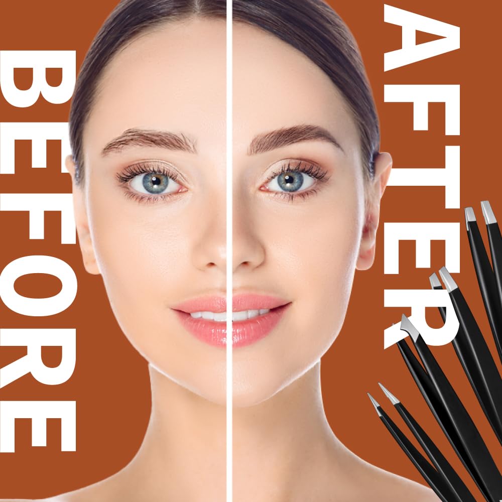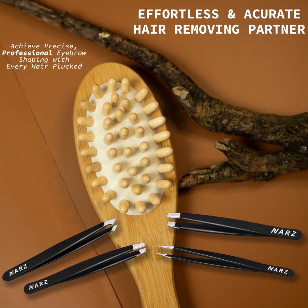 NARZ Pinzetten Professionelle Augenbrauen pinzette, 4-teiliges Edelstahl-Präzisionspinzettenset für Augenbrauenpinzette für die Gesichtshaare, zum Frauen und Männ Zupfen von Augenbrauen,