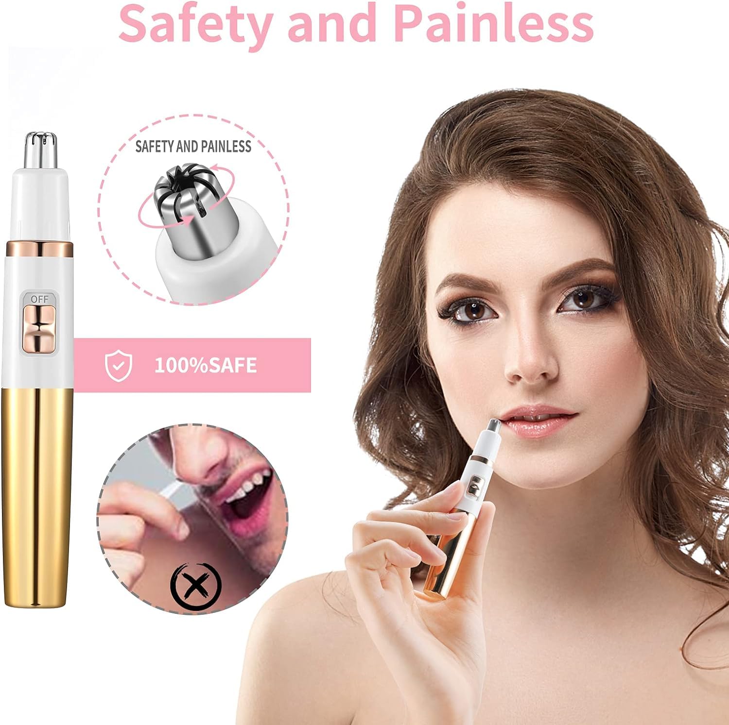 Nasenhaartrimmer Frauen, Damen Schmerzloser Ohr- und Nasenhaartrimmer für Frauen, Augenbrauen Gesicht Ohr Haarschneider Nasenhaarschneider Professionell Wasserdicht, Rose Gold