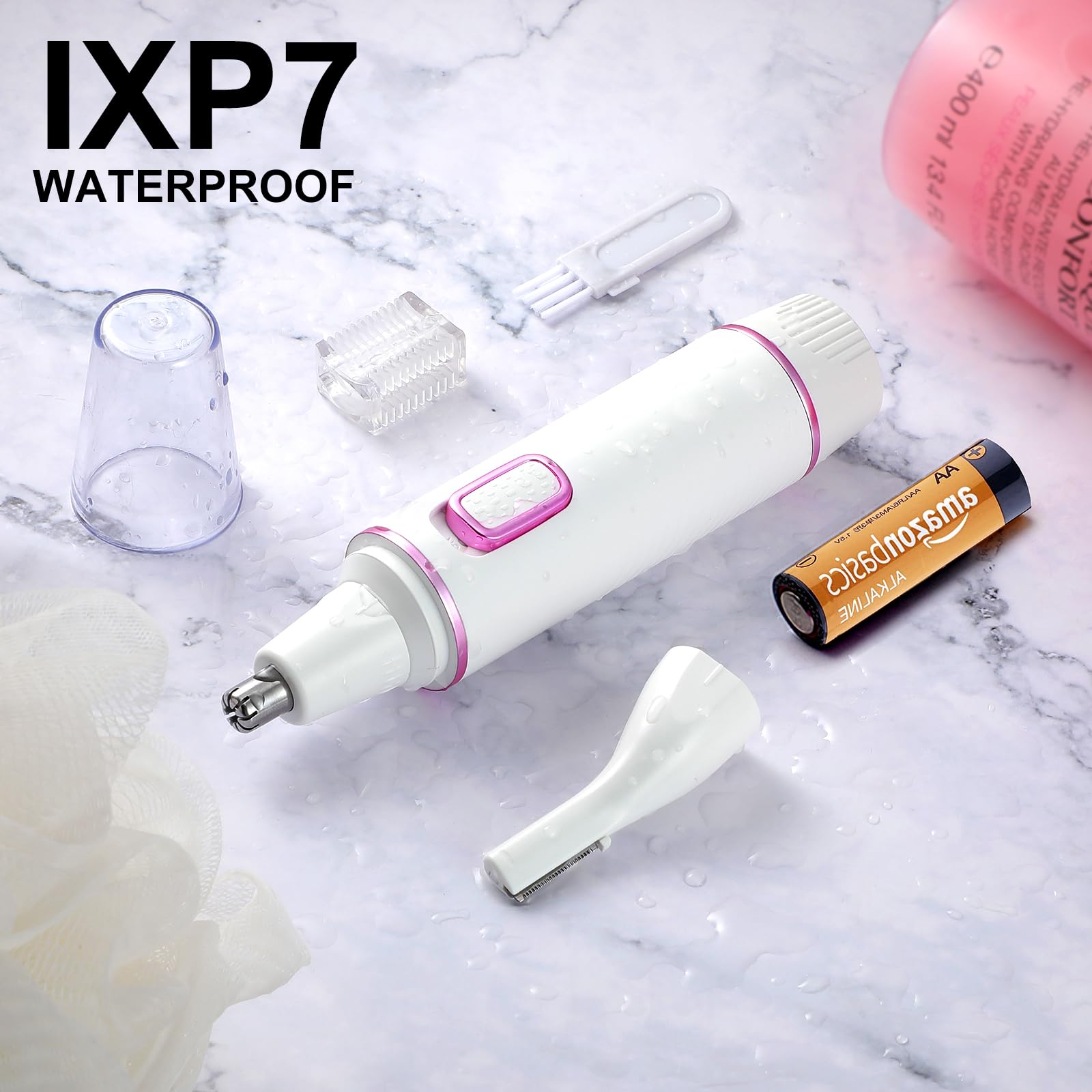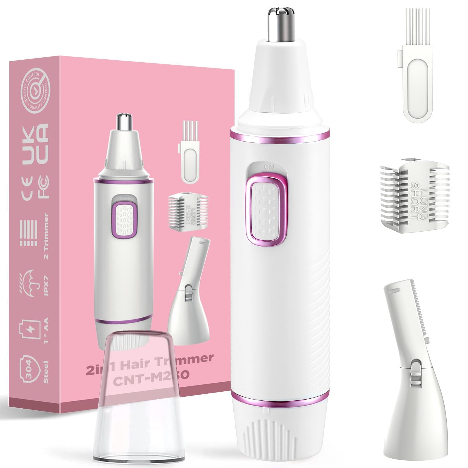 Nasenhaartrimmer Frauen, Nasenhaarschneider Ohrhaarschneider, 2 In 1 Professioneller Schmerzloser Nasen und Gesichtshaartrimmer, Dual Edge Klingen, IPX7 Wasserdicht, Einfache Reinigung
