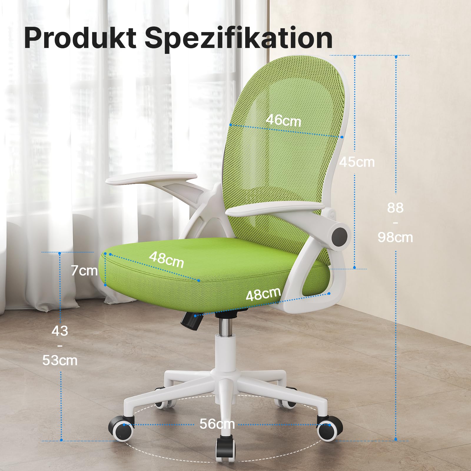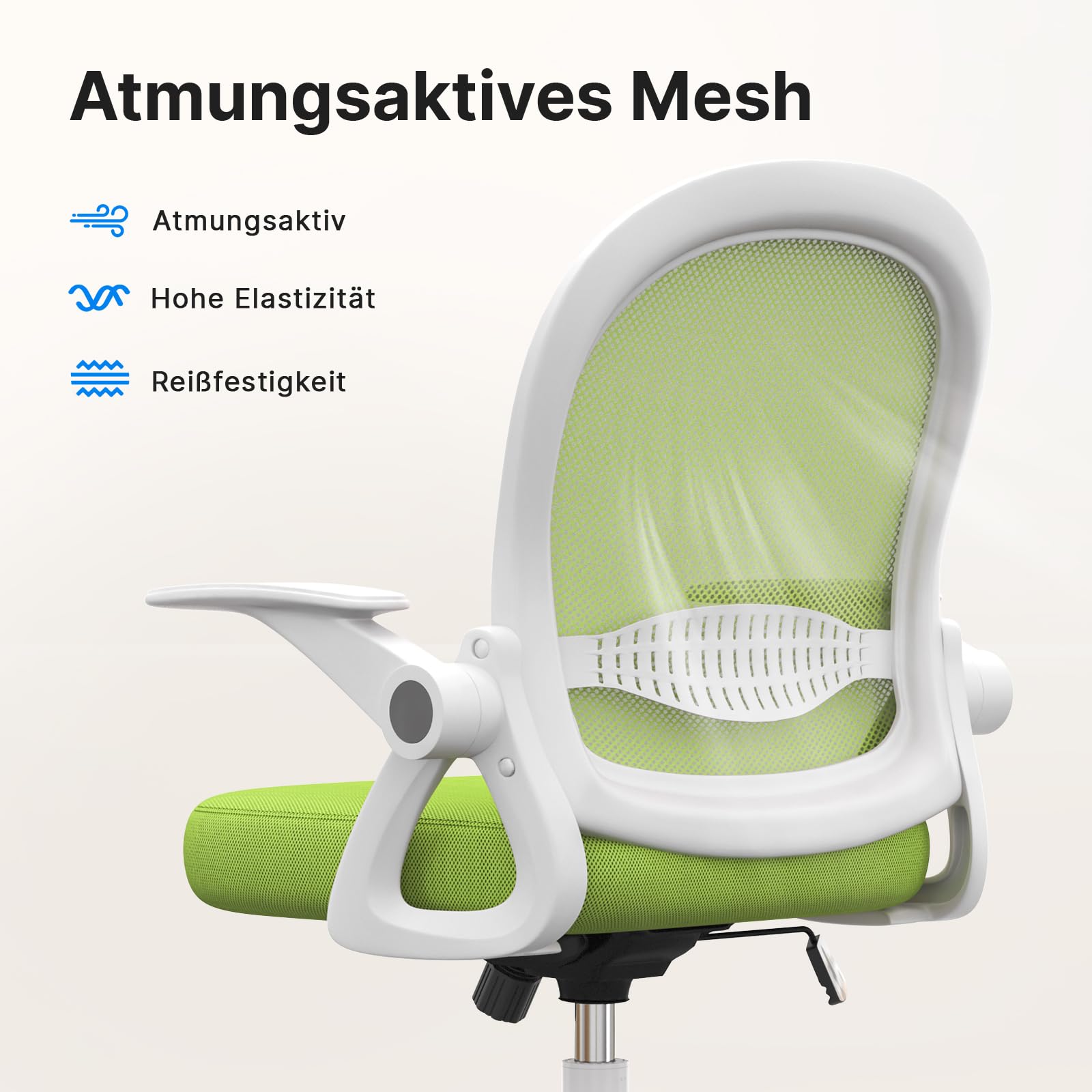 naspaluro Bürostuhl, Ergonomischer Schreibtischstuhl mit Atmungsaktiv Netzbespannung, Hochklappbare Armlehnen, Höhenverstellbarer, Computerstuhl, Leichter Stuhl, 360° Drehstuhl, Grün