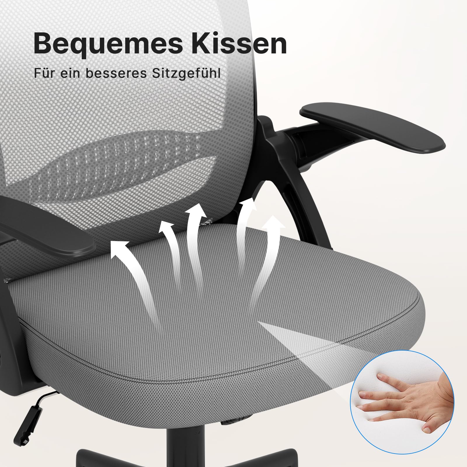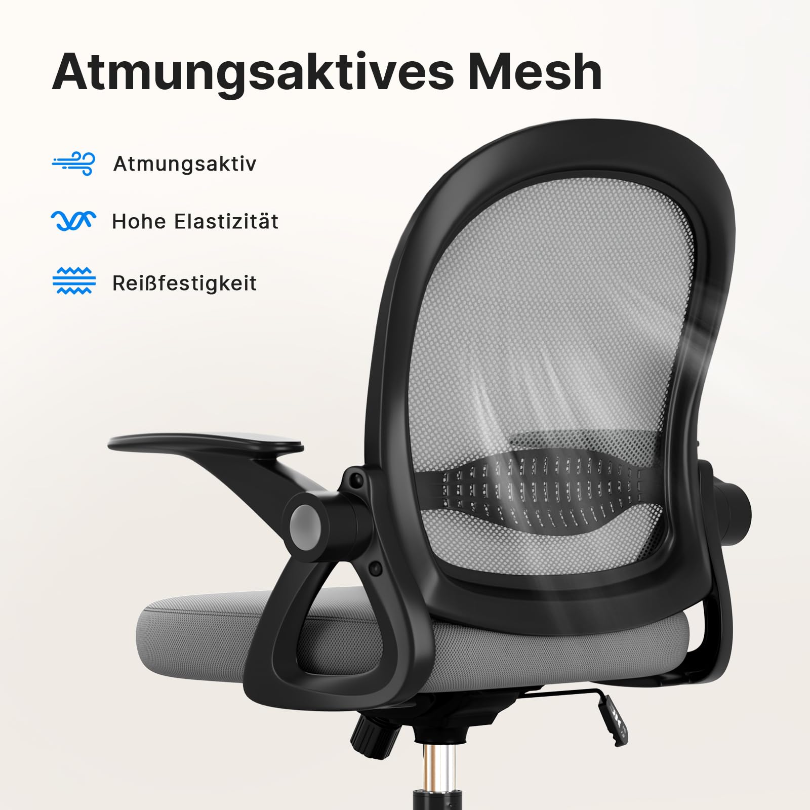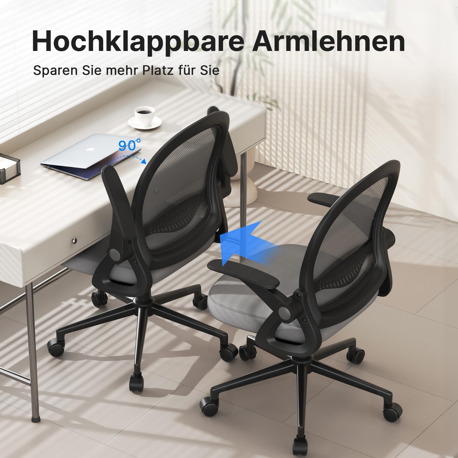 naspaluro Bürostuhl, Ergonomischer Schreibtischstuhl mit Atmungsaktiv Netzbespannung, Hochklappbare Armlehnen, Höhenverstellbarer, Computerstuhl, Leichter Stuhl, 360° Drehstuhl, Dunkelgrau
