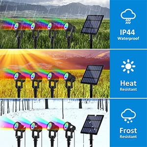 - ????【Zum Einschalten lange drücken】4-in-1-RGB-Solarstrahler mit abnehmbarem 5-W-Solarpanel. LANGE DRÜCKEN Sie den Schalter 3 Sekunden lang, um das Licht einzuschalten. Decken Sie das Solarpanel ab, um zu prüfen, ob das Licht an ist. Bei Problemen können Sie sich gerne an uns wenden.