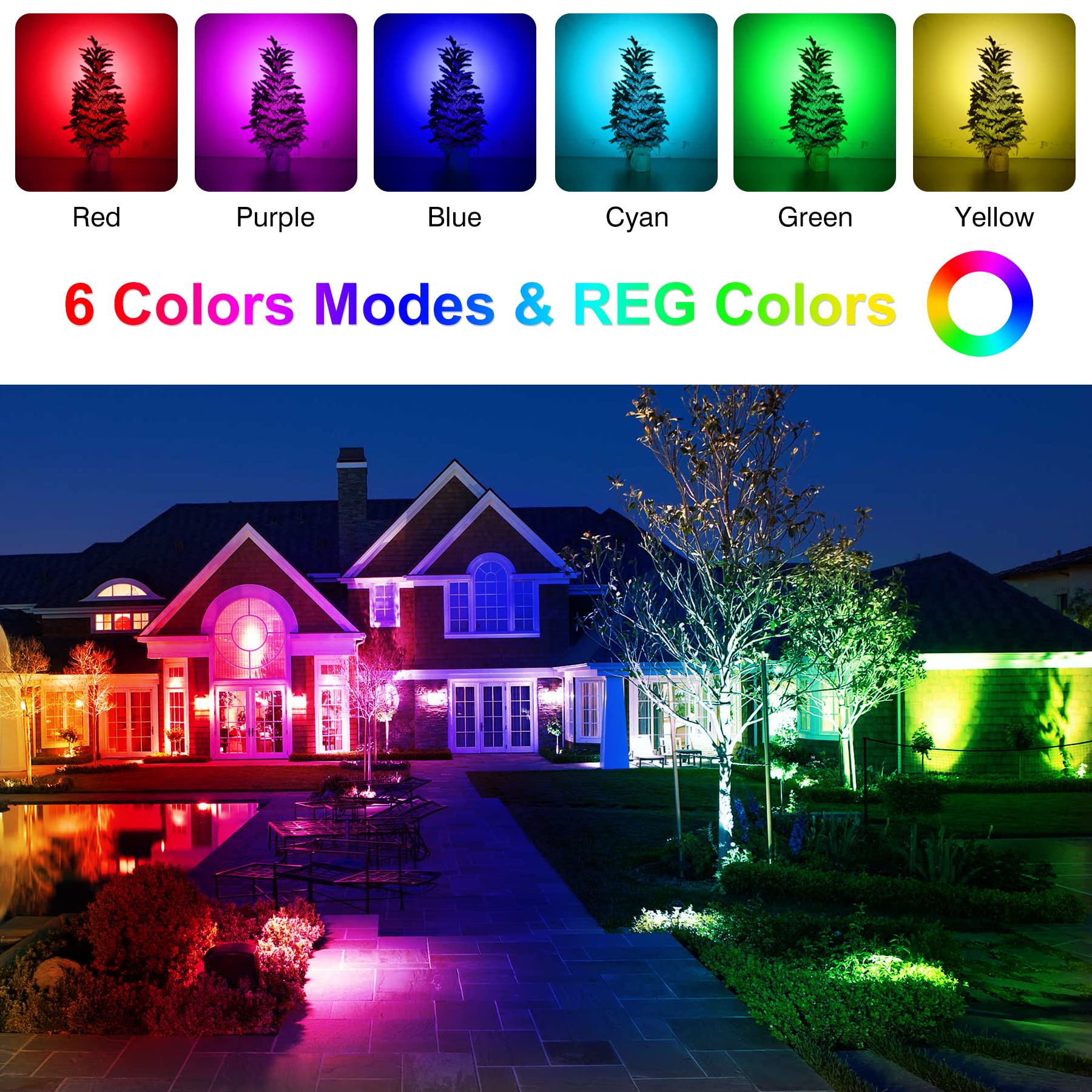 NATPOW Solarstrahler für Aussen Garten, RGB Gartenstrahler Solar IP65 Wasserdicht Farbwechsel Gartenbeleuchtung Gartenlampe Dusk to Dawn Solar Gartenleuchte für Bäume Terrasse(2 in 1)