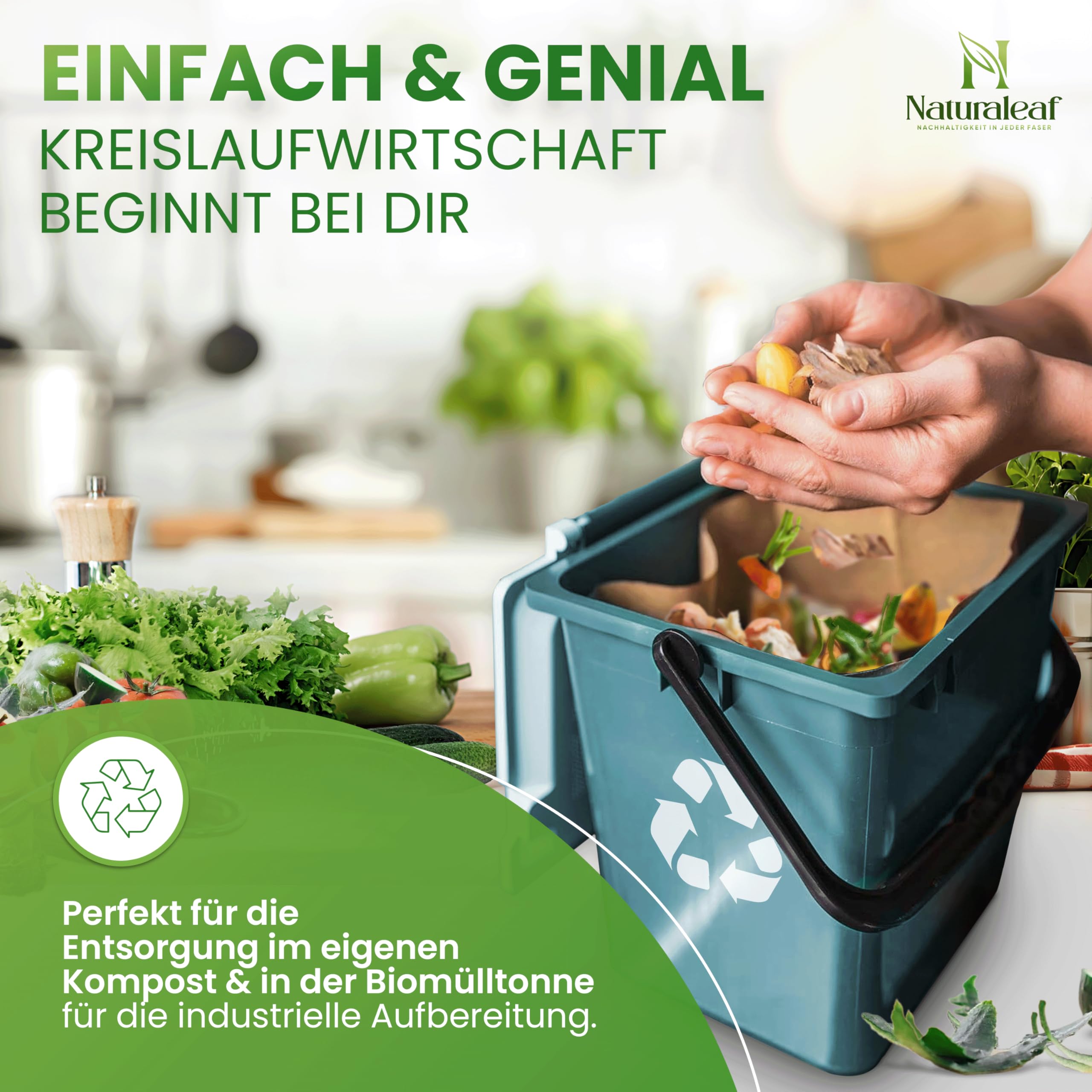 Mindestanzahl für die Bestellung von "NATURALEAF® Biomüllbeutel 10L | 40 Stück | Bio Müllbeutel mit optimaler Stärke & Haltbarkeit | Kompostierbare Müllbeutel - die nachhaltige Entsorgungslösung für Gastronomie & Haushalt" ist 1.