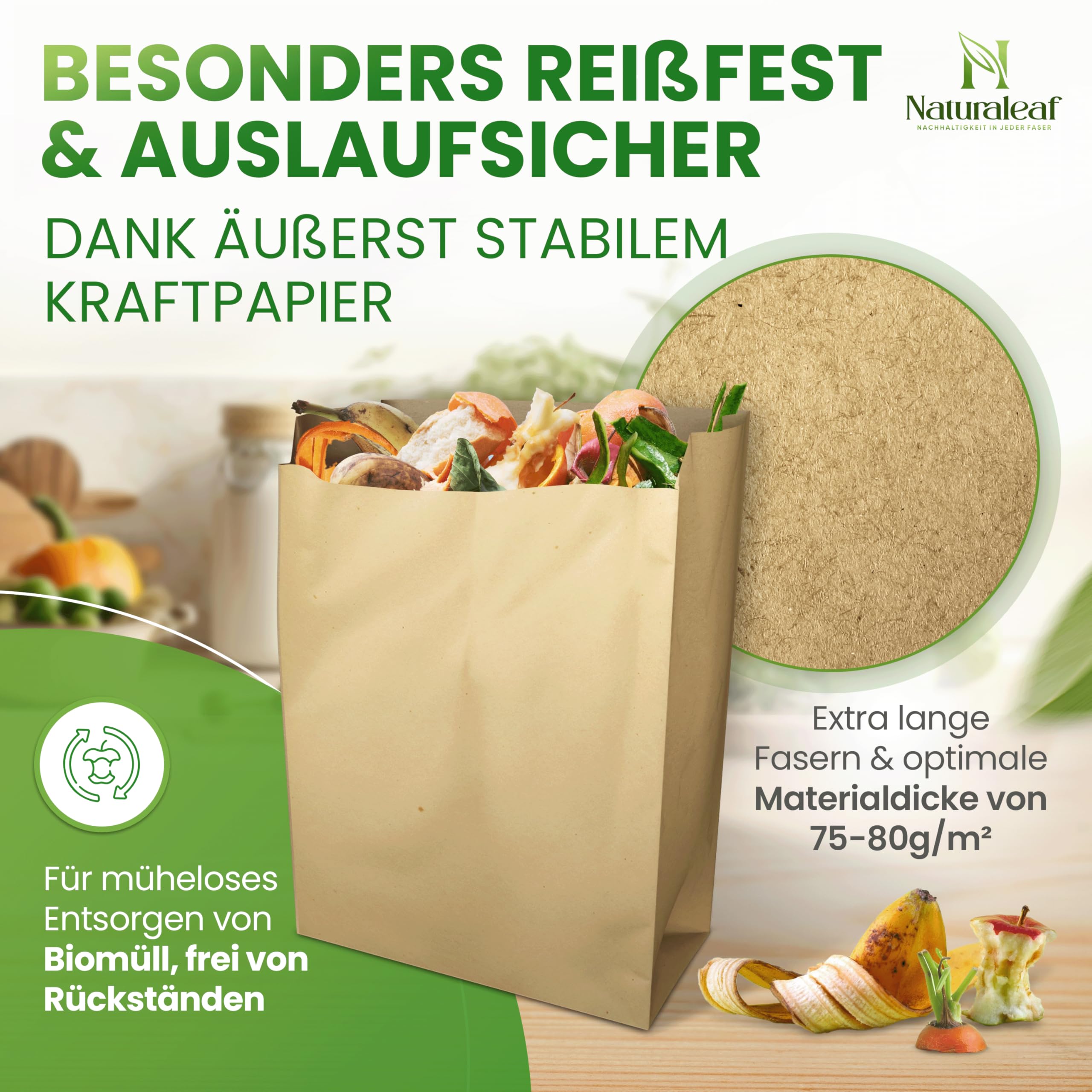 • ????OPTIMALE STÄRKE & HALTBARKEIT - Die Biomülltüten besitzen mit 75-80g/m² die optimale Materialdicke. Dadurch sind unsere Bio Mülltüten ideal für den täglichen Küchenbedarf!