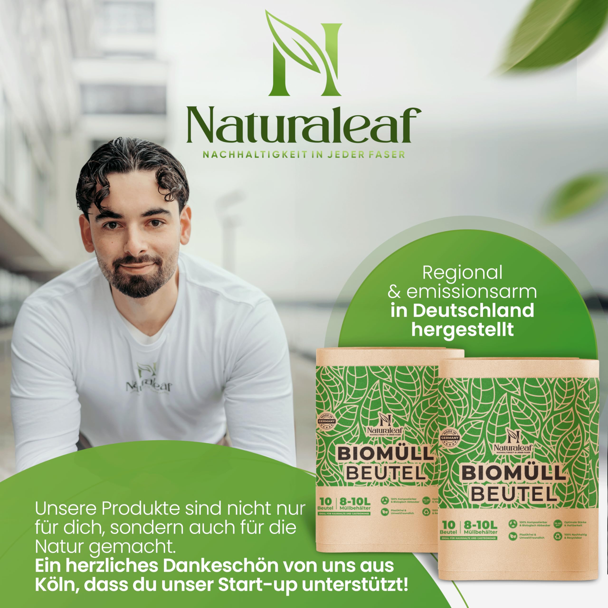 NATURALEAF® Biomüllbeutel 10L | 40 Stück | Bio Müllbeutel mit optimaler Stärke & Haltbarkeit | Kompostierbare Müllbeutel - die nachhaltige Entsorgungslösung für Gastronomie & Haushalt