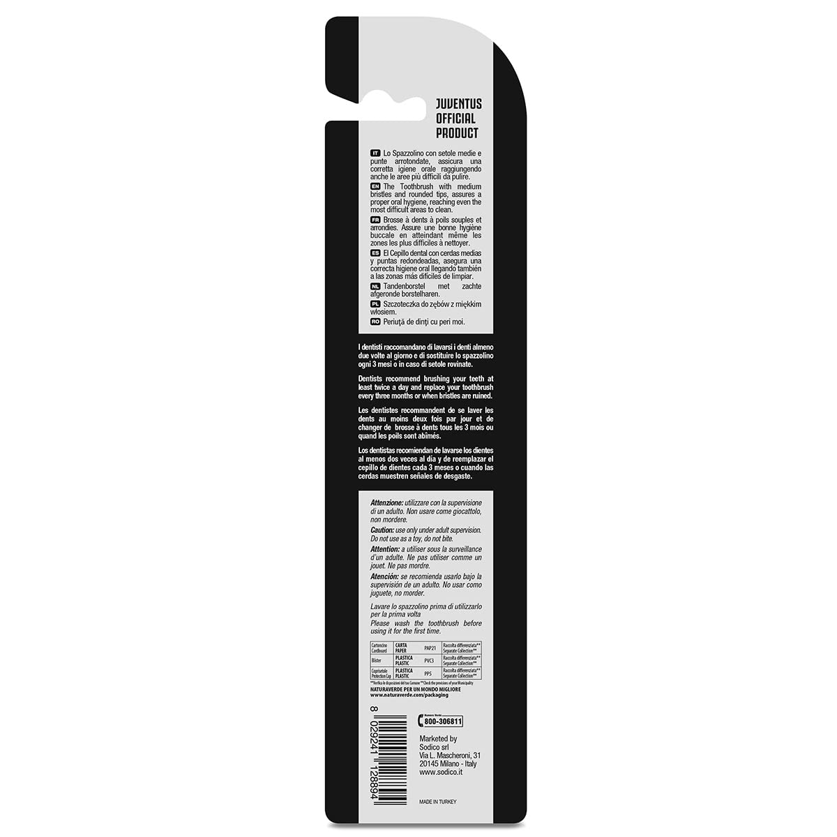 Naturaverde Juventus Manuelle Zahnbürste, wie Foto Weiss/Schwarz