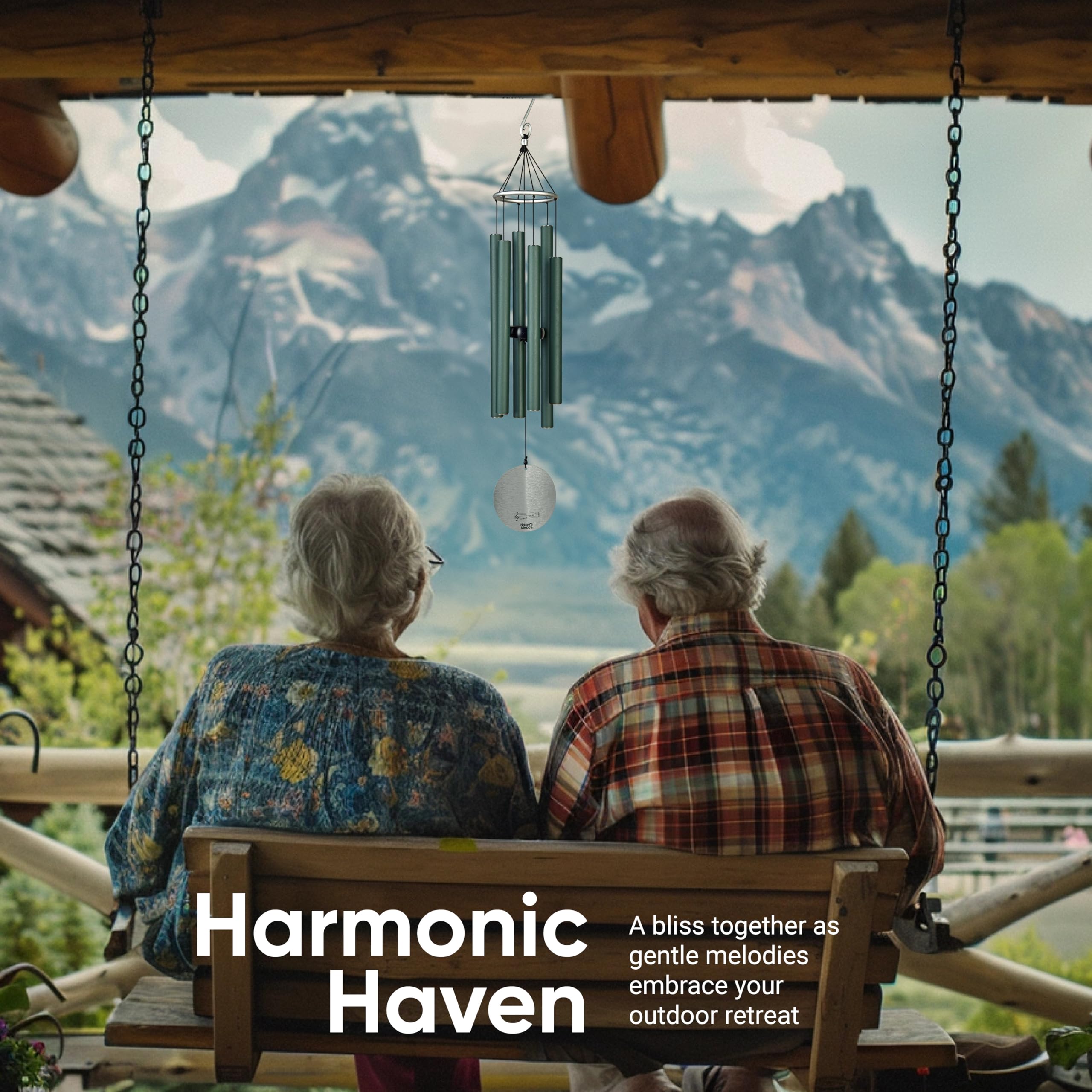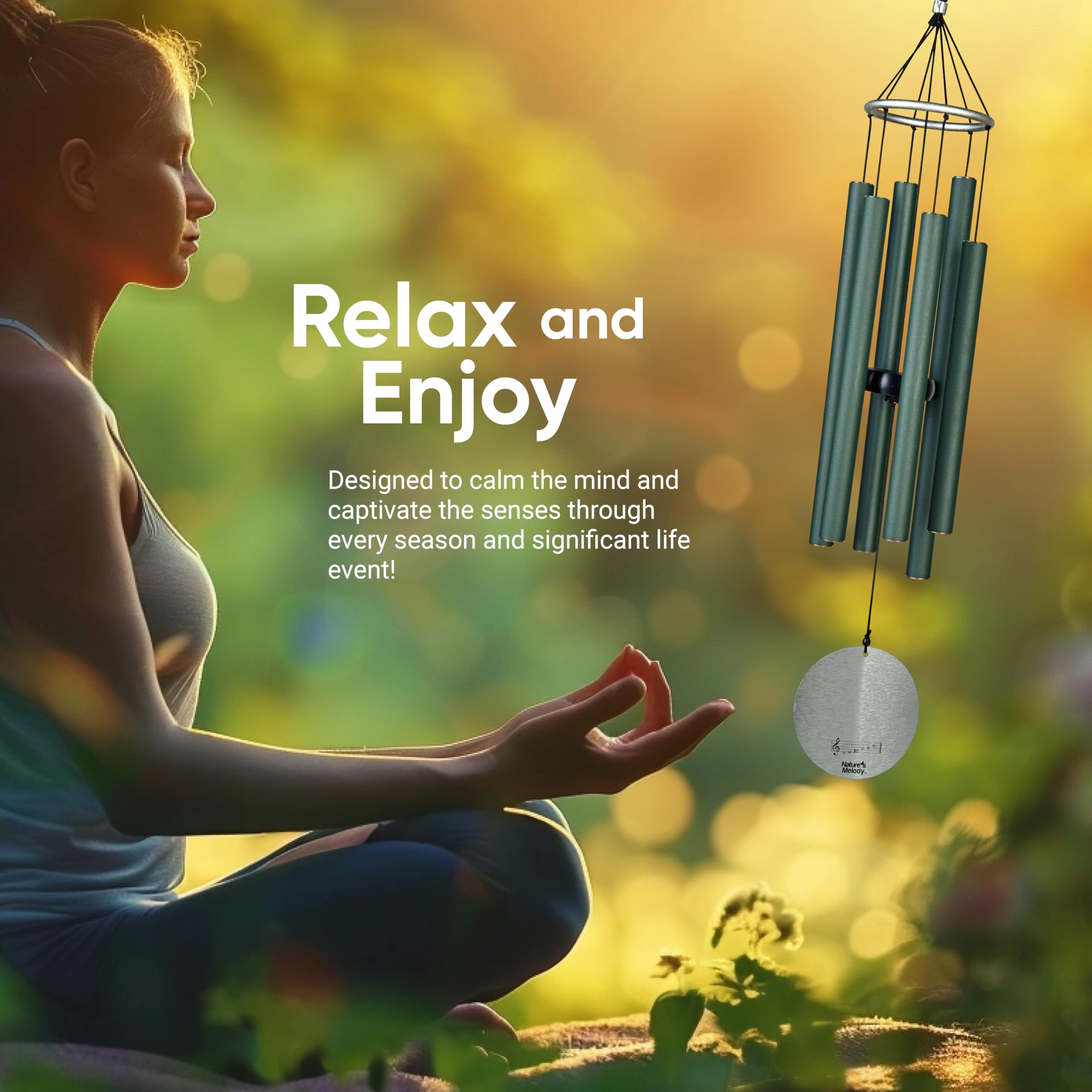 Nature's Melody Aureole Tunes Windspiel – Outdoor-Windspiel mit 6 Röhren, abgestimmt auf E Pentatonische Skala, 100% rostfreies Aluminium, Pulver-Finish und S-Hakenaufhänger für Trauer, Gedenkgeschenk