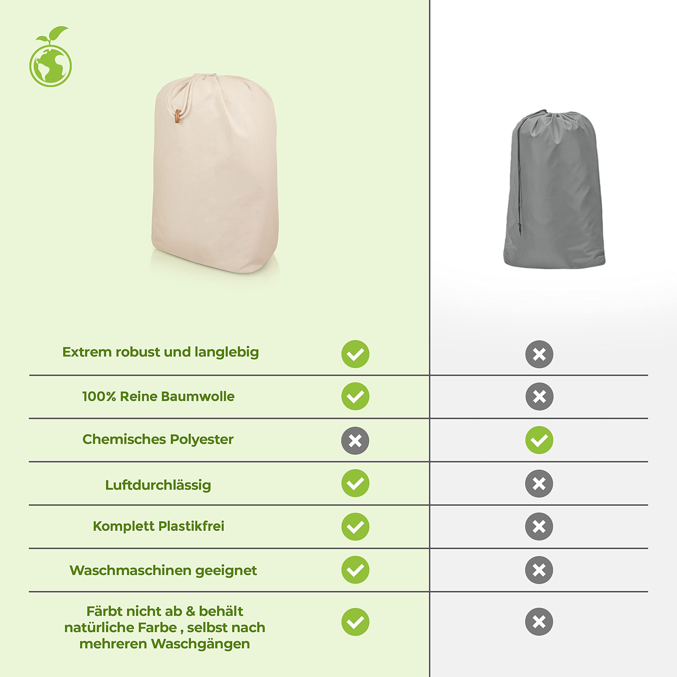 Naturstube® Wäschesack, 2er Set 50 x 70 cm - Strapazierfähige 45l Wäschebeutel Reise, 100% Baumwolle [Öko-Tex zertifiziert], Wäschesäcke, Stoffbeutel Gross, Laundry Bag, Schmutzwäschebeutel Reise