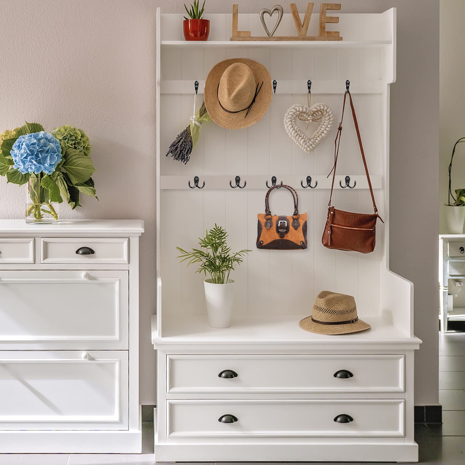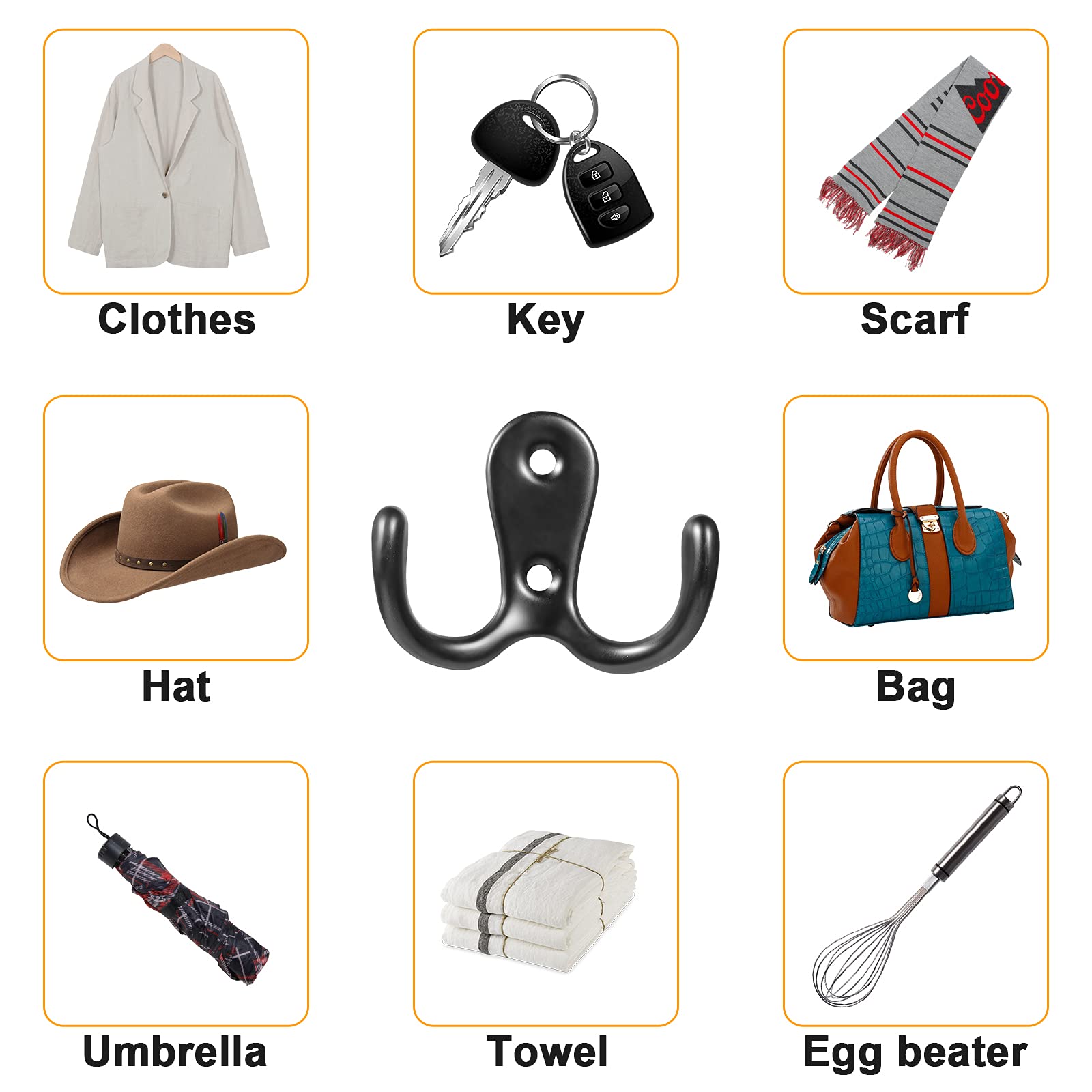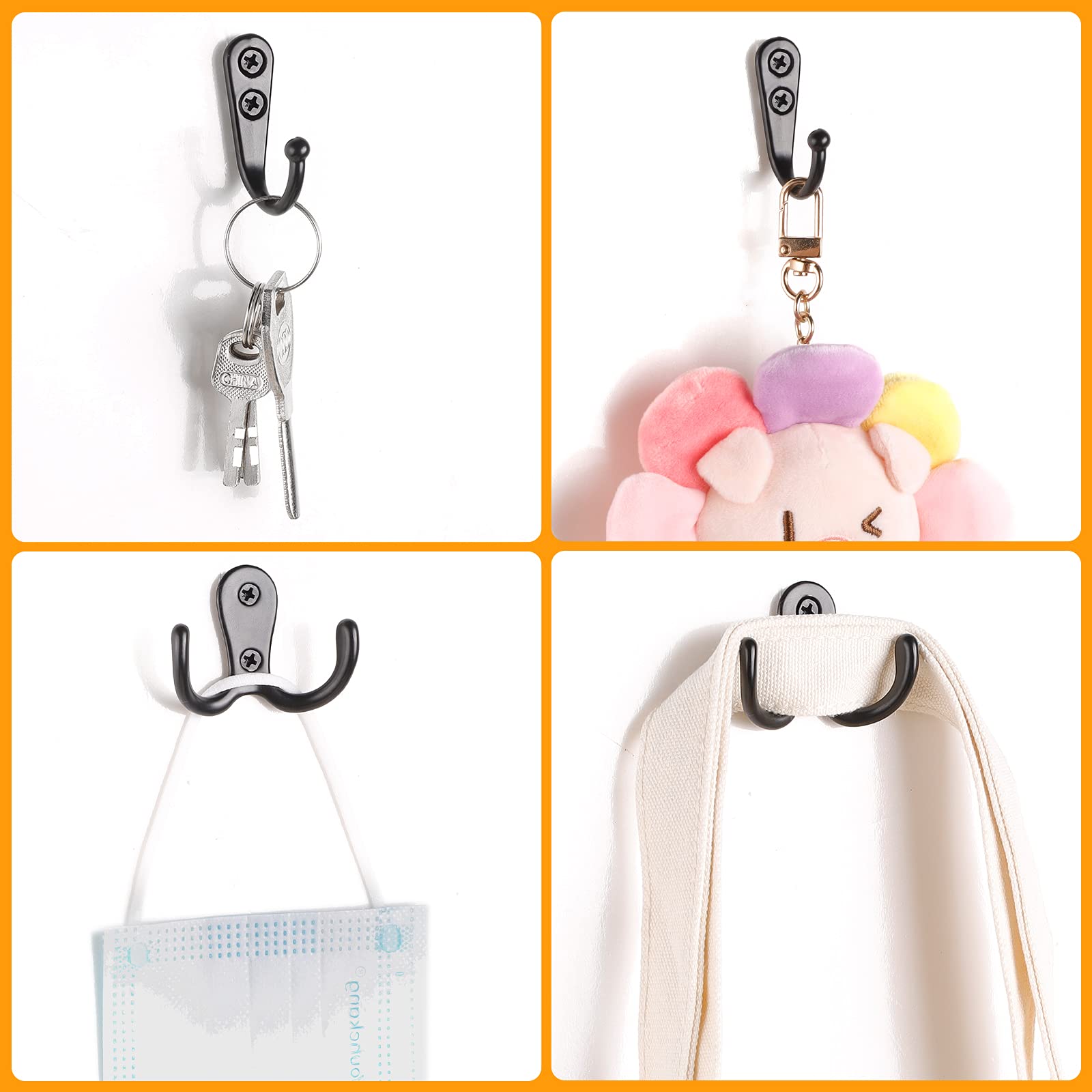 - Multifunktionales: Sie können diese schwarz coat hooks-kits an verschiedenen orten wie schlafzimmern, umkleidekabinen, badezimmern und schränken verwenden, um verschiedene gegenstände, schlüssel, hüte, gürtel, taschen, hemden, handtücher, tassen.