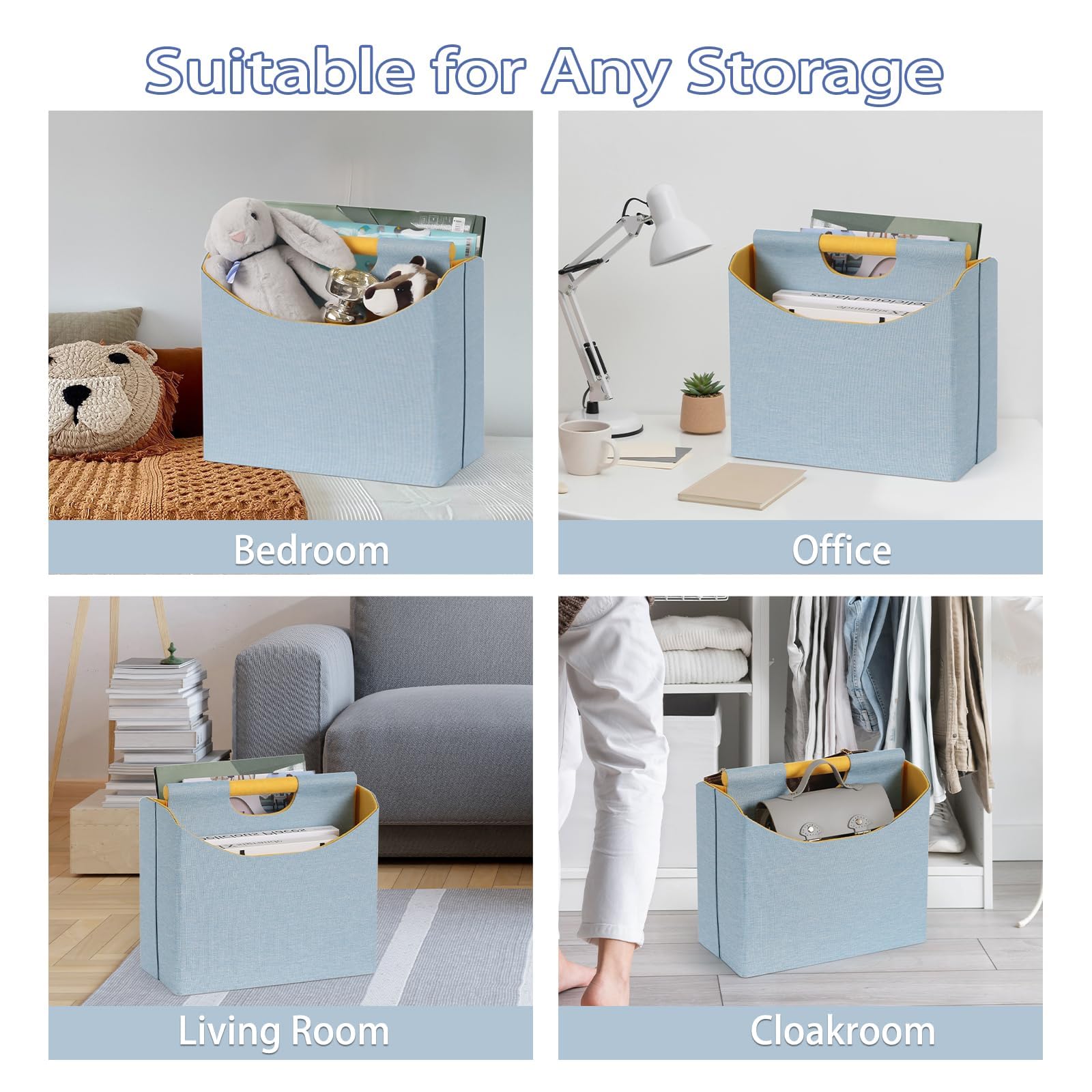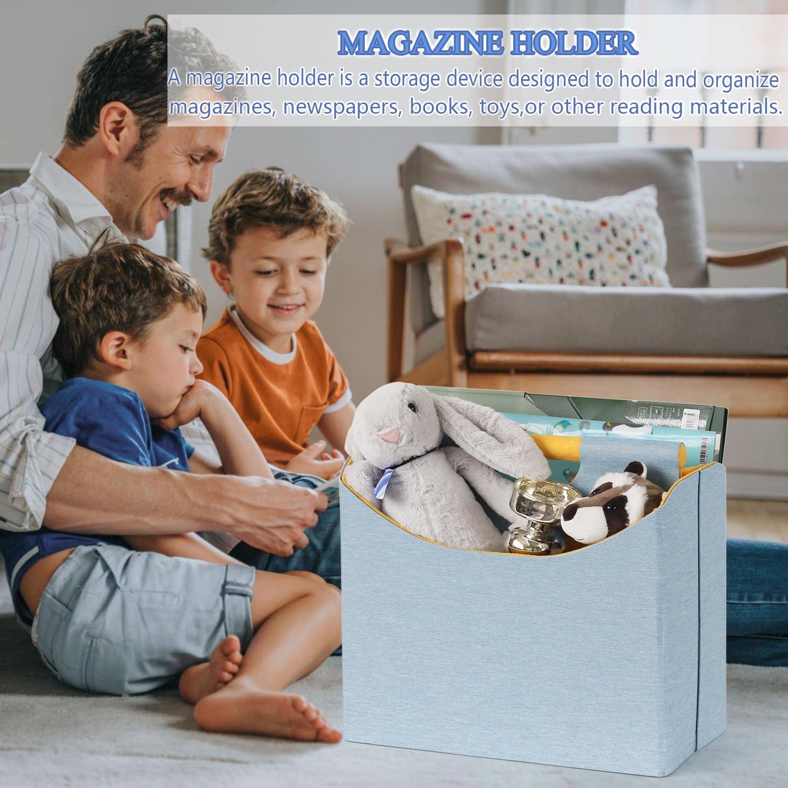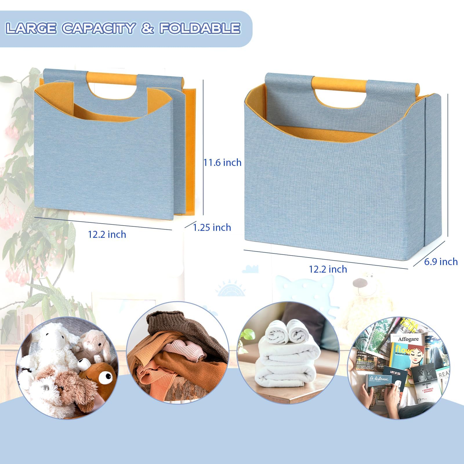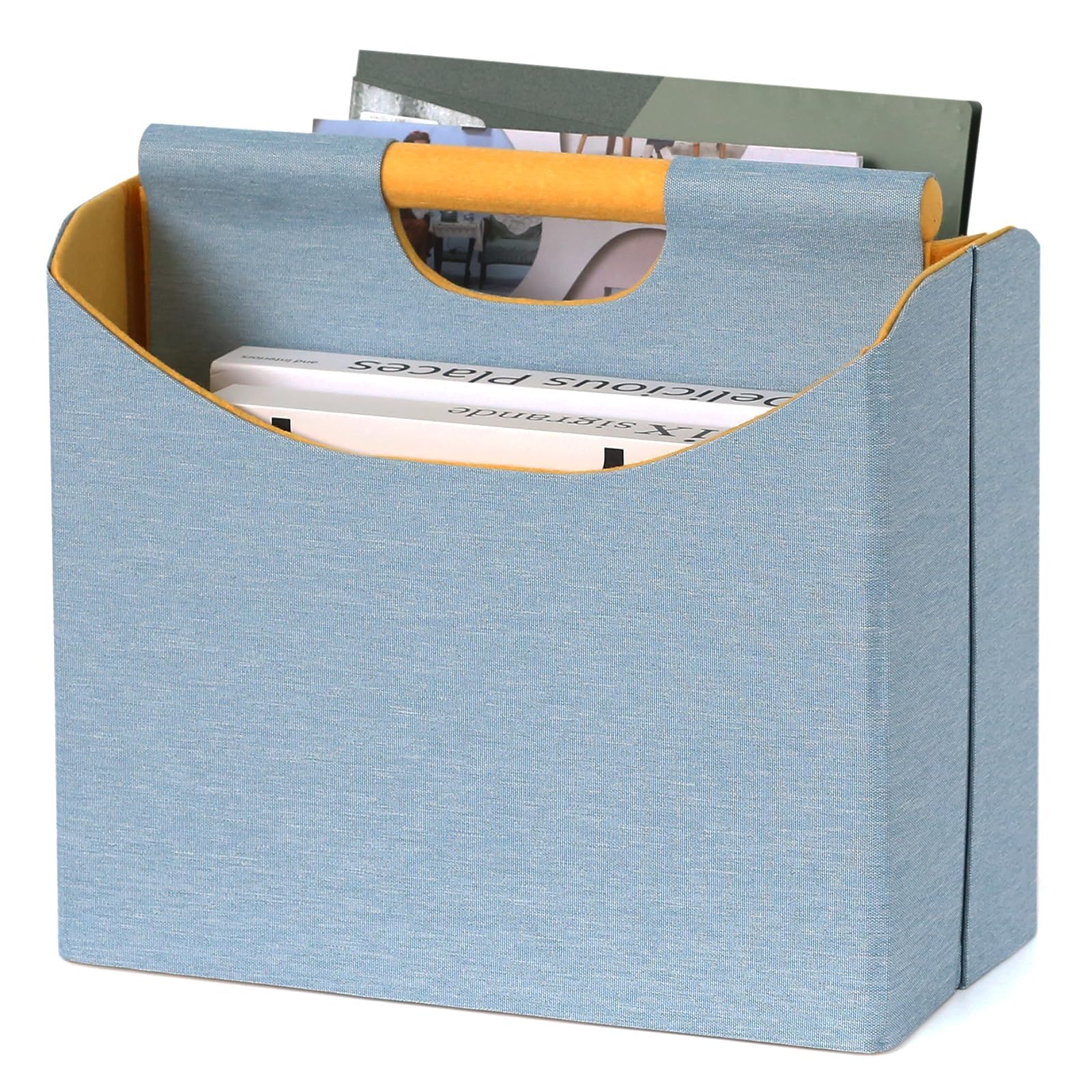 Neateam Zeitungsständer Modern Zeitungshalter, Faltbarer Zeitschriftenständer mit Bambusgriff, Zeitschriftensammler Zeitungskorb für Büro Zuhause und Wohnzimmer - Gelb Blau