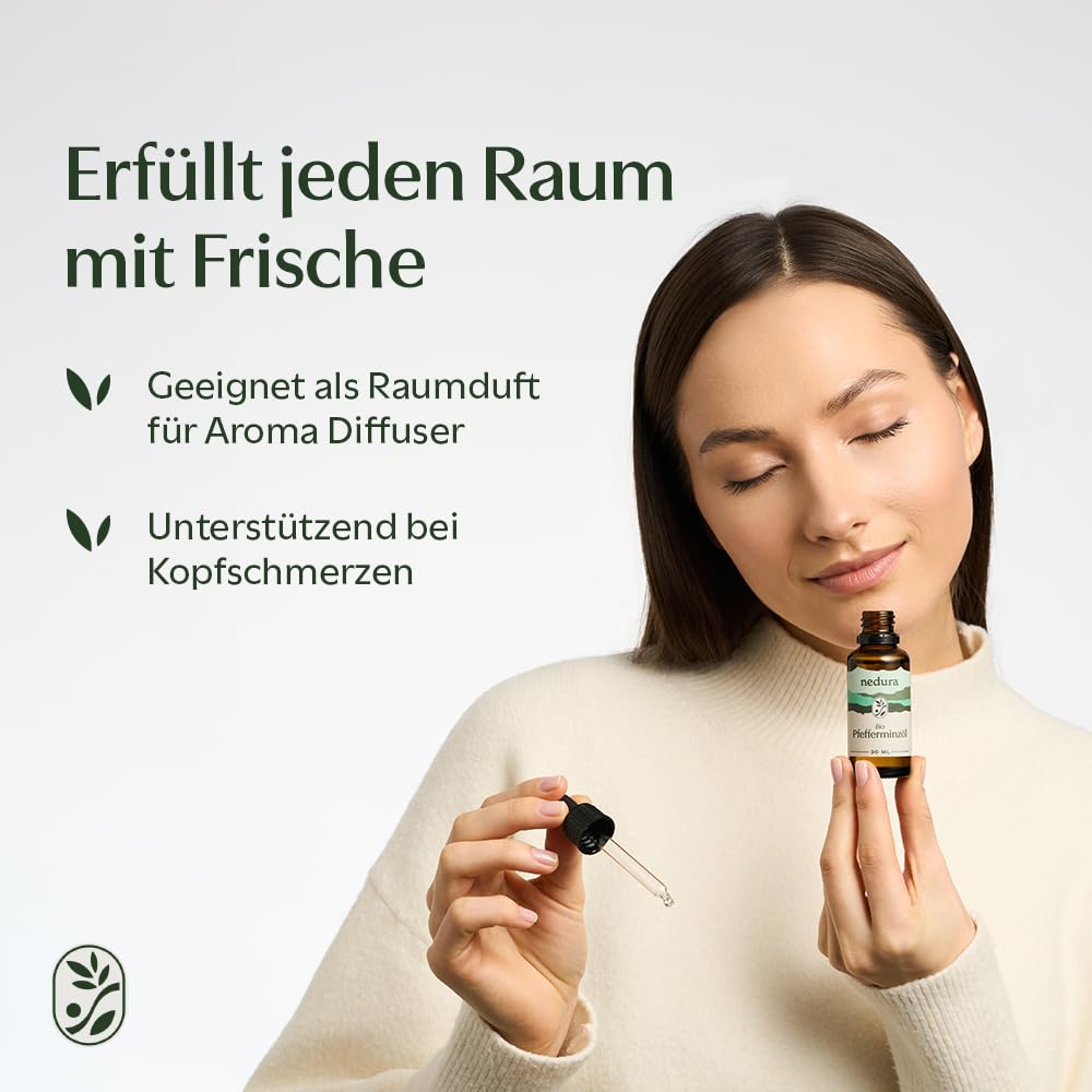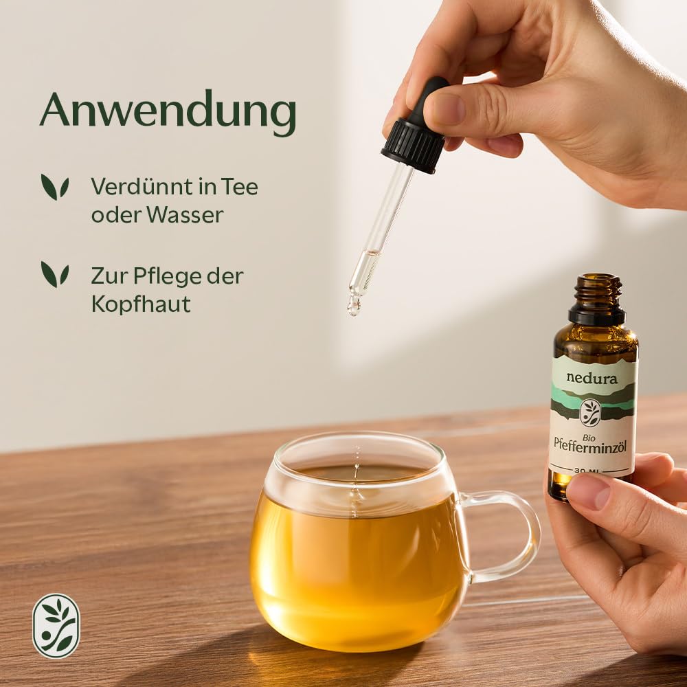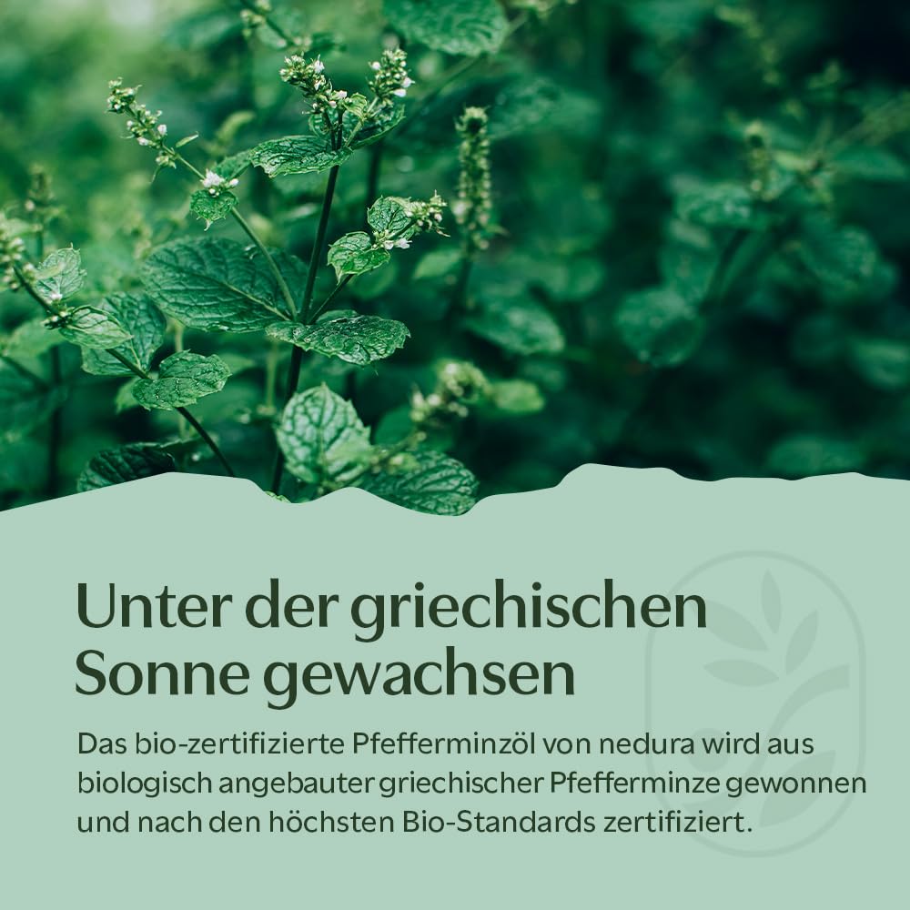 nedura® BIO Pfefferminzöl [100% NATURREIN] - Echtes Pfefferminzöl in Lebensmittelqualität - Belebend & erfrischend - Ätherisches Minzöl, Peppermint Oil - BIO-Qualität aus Griechenland - 30ml