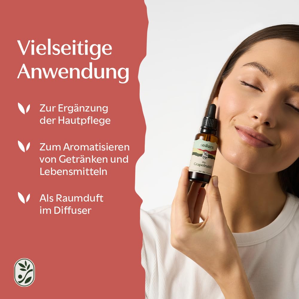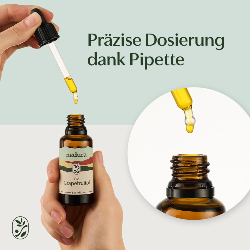 nedura® BIO Grapefruit Öl [100% NATURREIN] - Echtes Grapefruitöl - frisch, fruchtig & leicht - Grapefruit Oil für Speisen, Getränke & Aroma Diffuser - 30ml