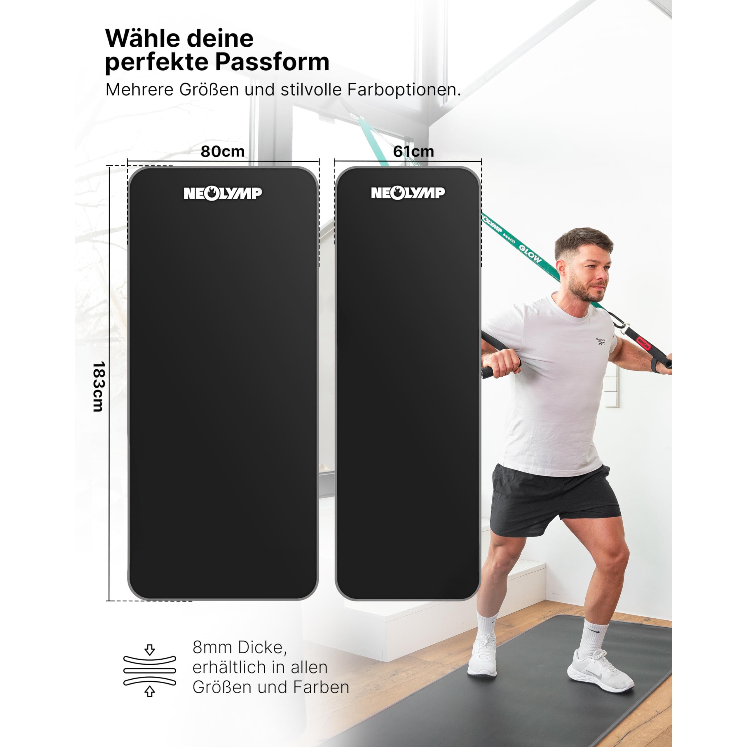 NEOLYMP extra dicke Fitnessmatte rutschfest inkl. Tragegurt & E-Book – Yogamatte, Gymnastikmatte, Sportmatte & Pilates Matte – Trainingsmatte für Zuhause, Studio & Outdoor (Grau 80 cm)