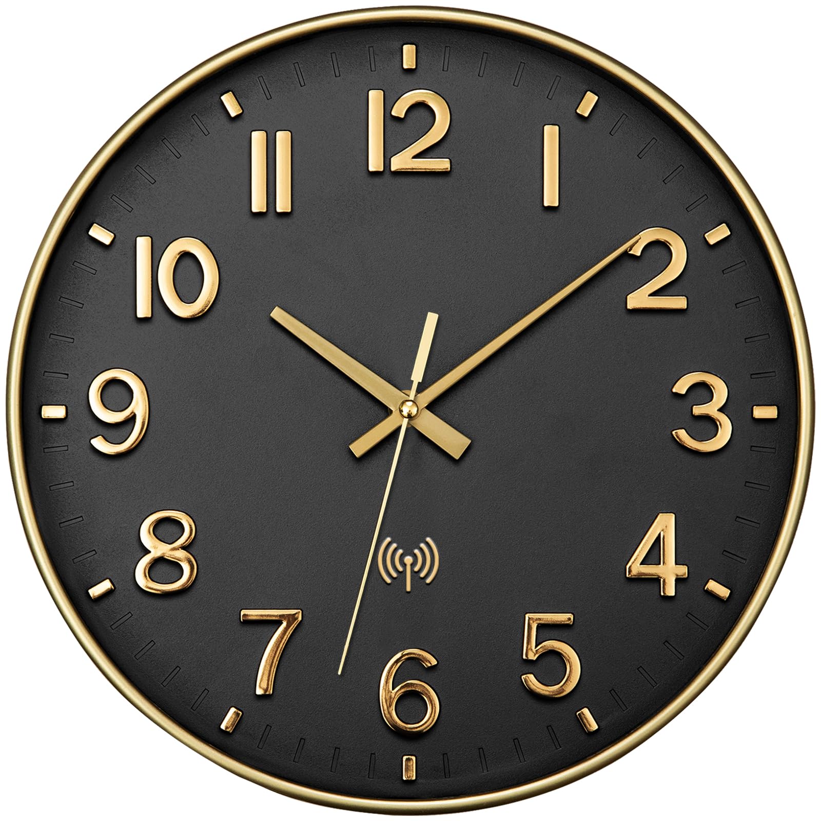 NESIFEE Wanduhr Funk Funkuhr Wand Lautlos Funkwanduhr Geräuschlos Funk Wanduhr Ohne TickgeräUsche 30cm Gold Gross Moderne Design Wohnzimmeruhr Küchenuhren Deko Wohnzimmer Badezimmeruhr Uhr Wand