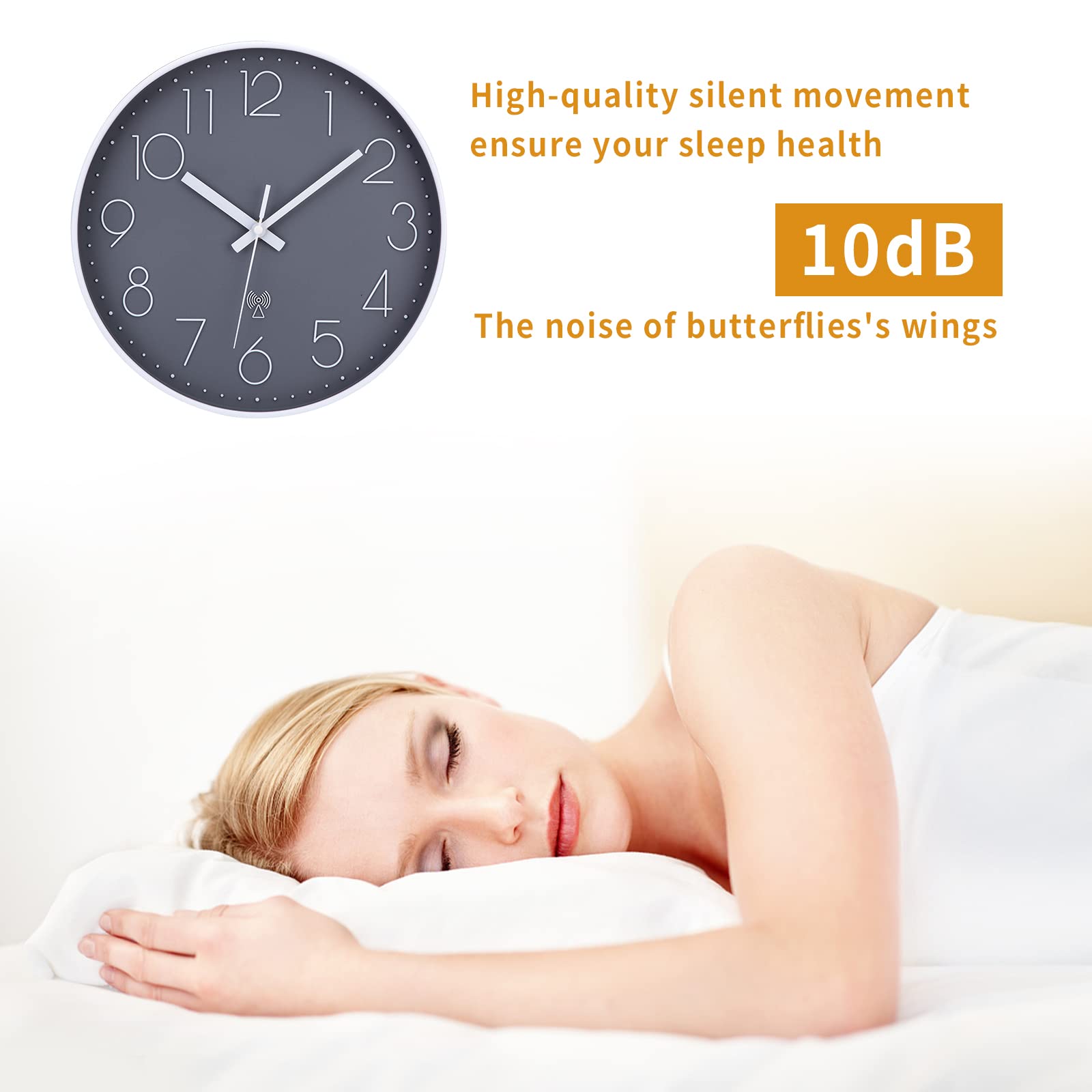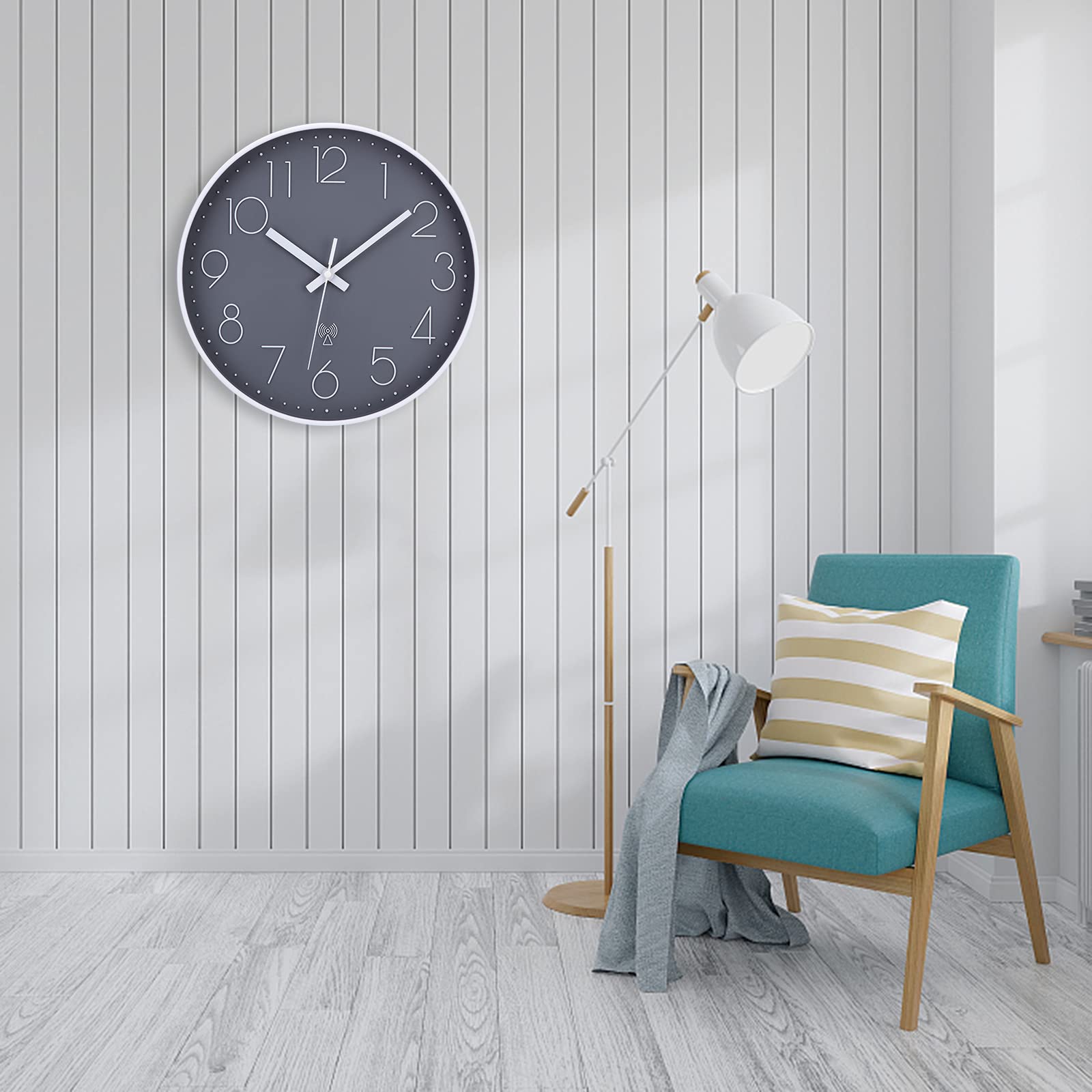 NESIFEE Funkuhr Wanduhr Ohne Tickgeräusche, lautlose Wanduhr, gut lesbar, Küchenuhr, Wohnzimmeruhr, modern, leise ohne Ticken