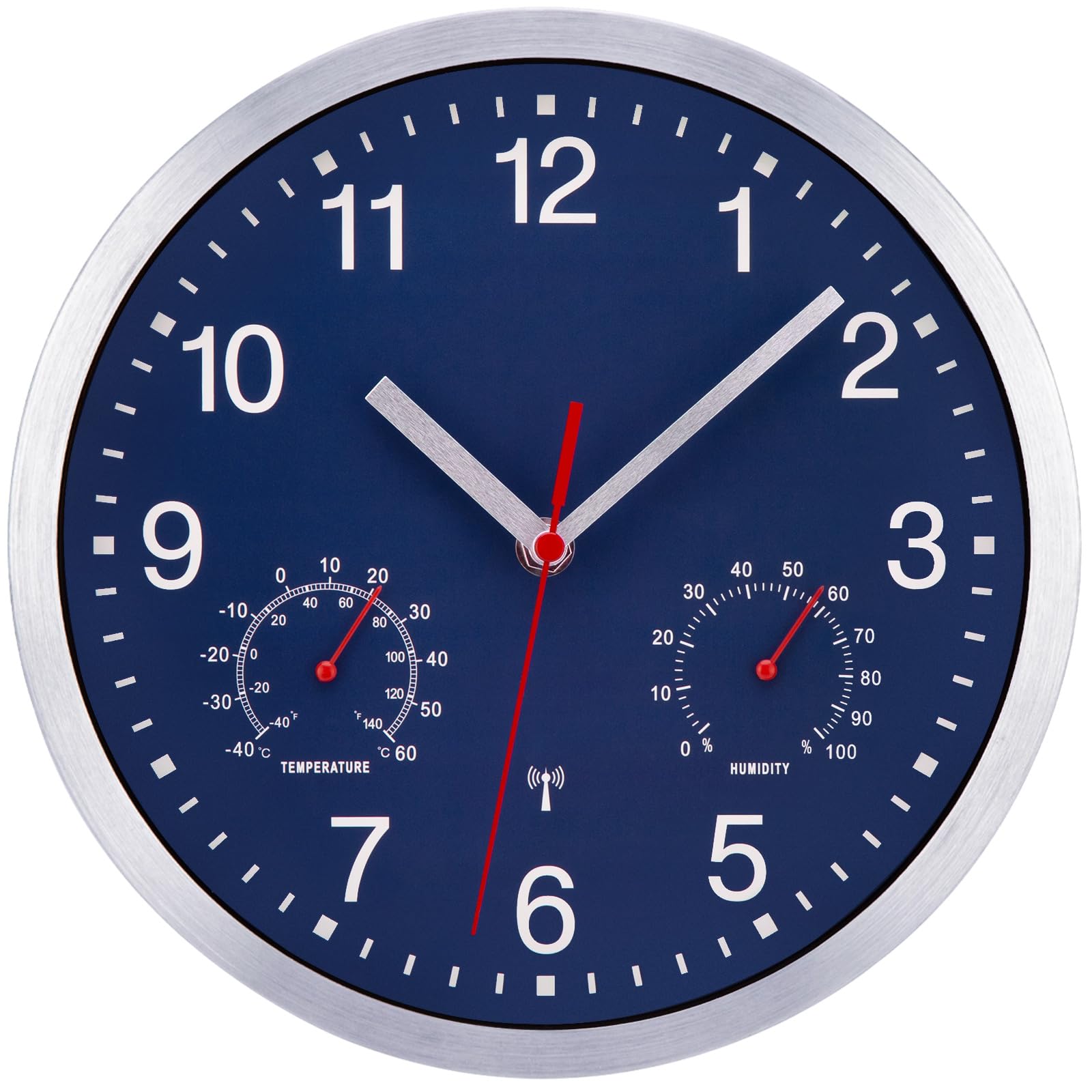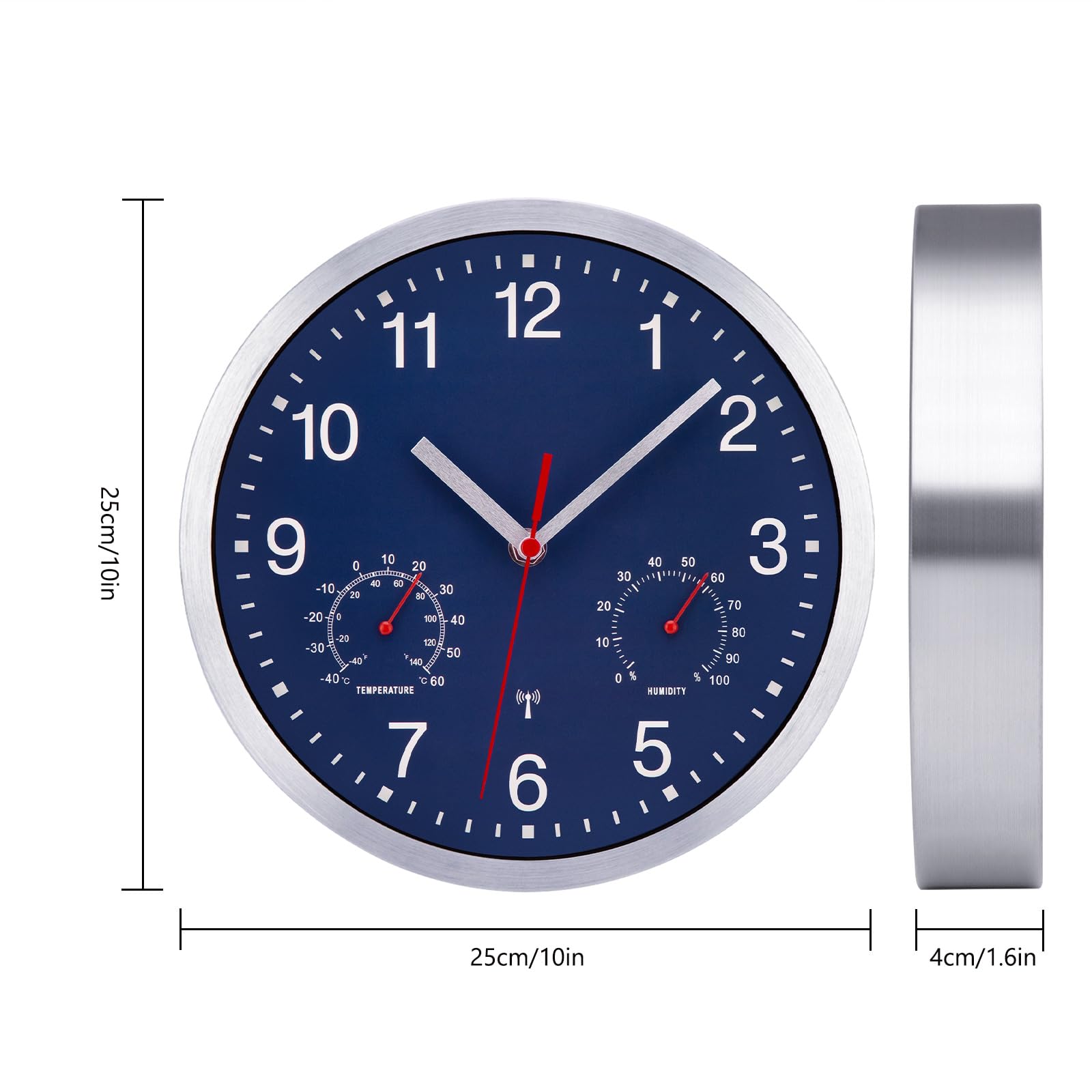 NESIFEE Funkwanduhr Geräuschlos Funkuhr Wand Wanduhr Funk Ohne Tickgeräusche mit Temperaturanzeige und Feuchtigkeitsmesser Lautlos Leis kein Ticken Blau Gut Lesbar für Wohnzimmer Büro Küche Uhr