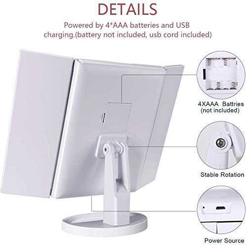 Nestling Make-up-Spiegel mit LED-Lichtern, 21 LED-Lichtern, Kosmetikspiegel mit Touchscreen, Vergrösserung dreifach faltbar, 180 ° freie Drehung, Dual-Netzteil LED-Spiegel (weiss)