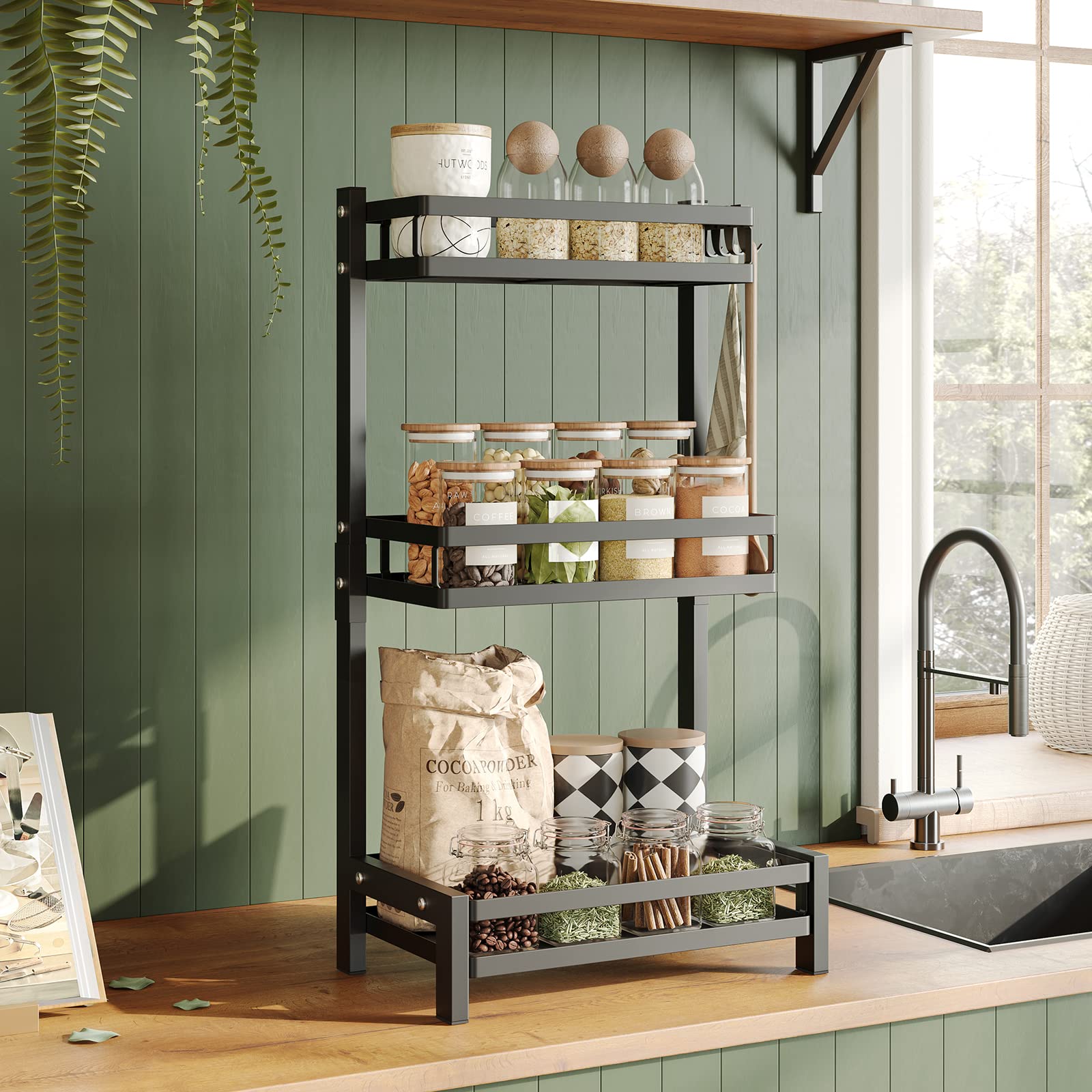 NETEL Multifunktional Gewürzregal Stehend, 3 Etagen Regal Küche Gewürzregal, Küchenregal Organizer für Arbeitsplatte Aufbewahrung mit 4 Haken,Verstellbare Füsse, für Esszimmer, Küchen, Badezimmer