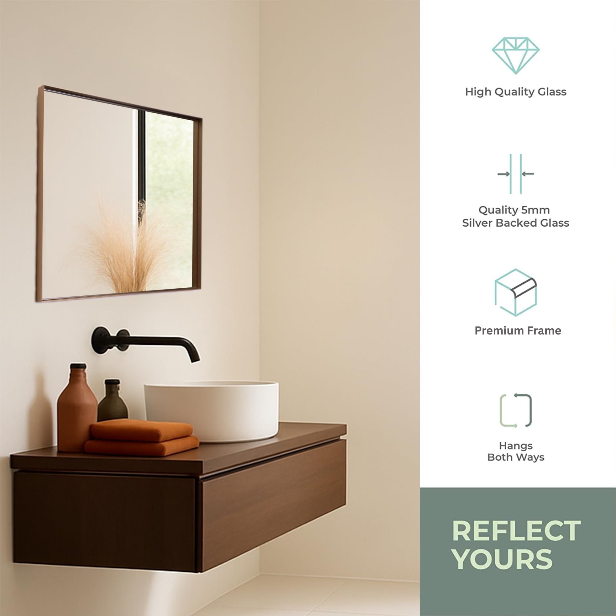 Neue Design Mood® Premium Rectangular Bathroom Mirror Gold Framed Wall Mounted, Recessed Rectangle Frame Modern & Stylish (70cm x 50cm)