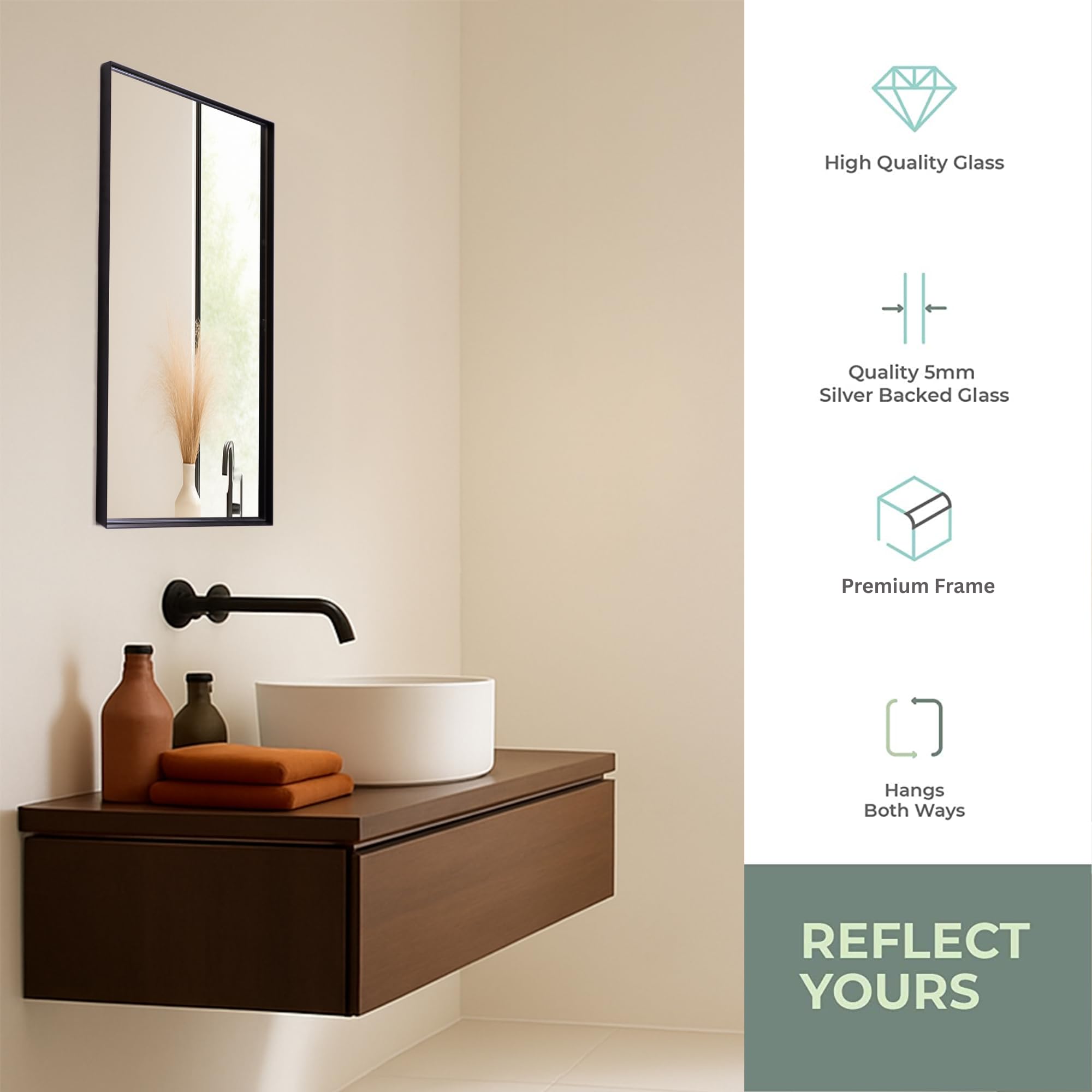 Neue Design Mood® Premium Rectangular Bathroom Mirror Black Framed Wall Mounted, Recessed Rectangle Frame Modern & Stylish (70cm x 50cm)