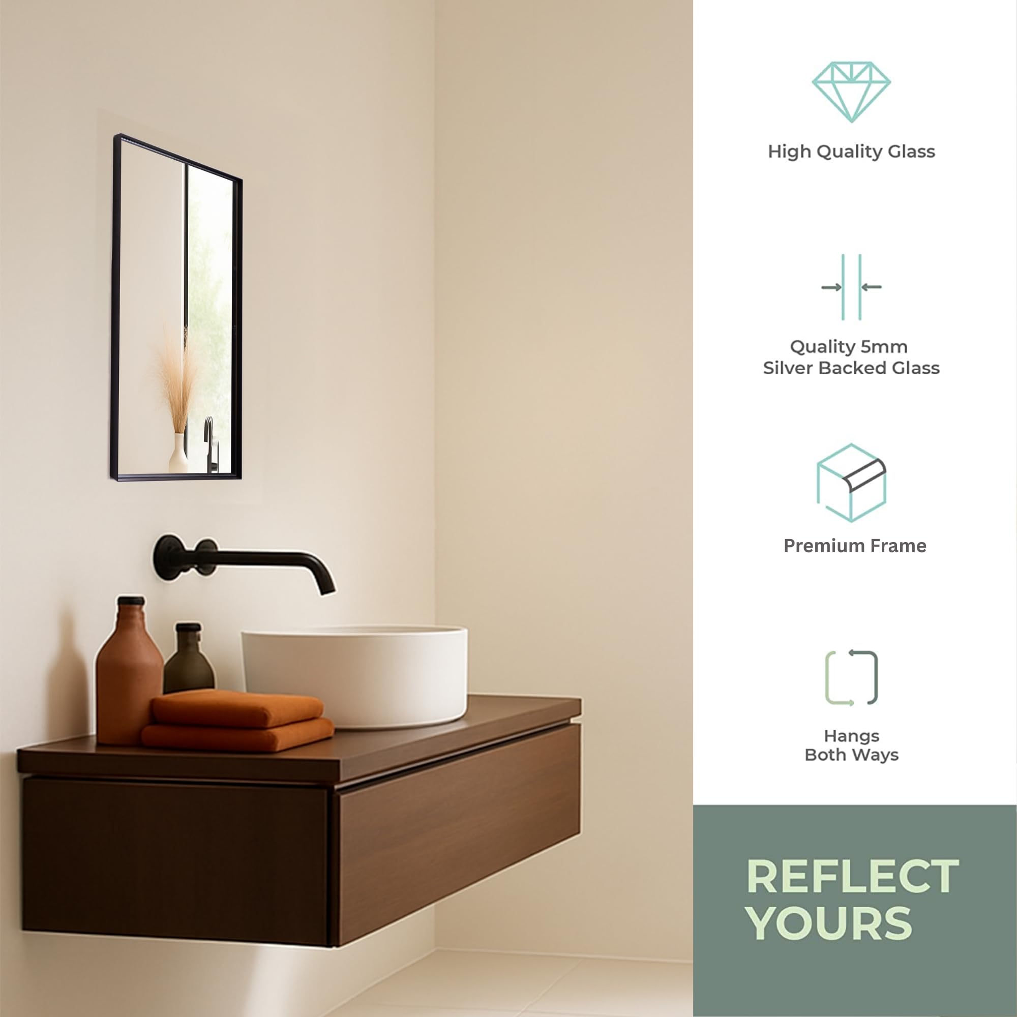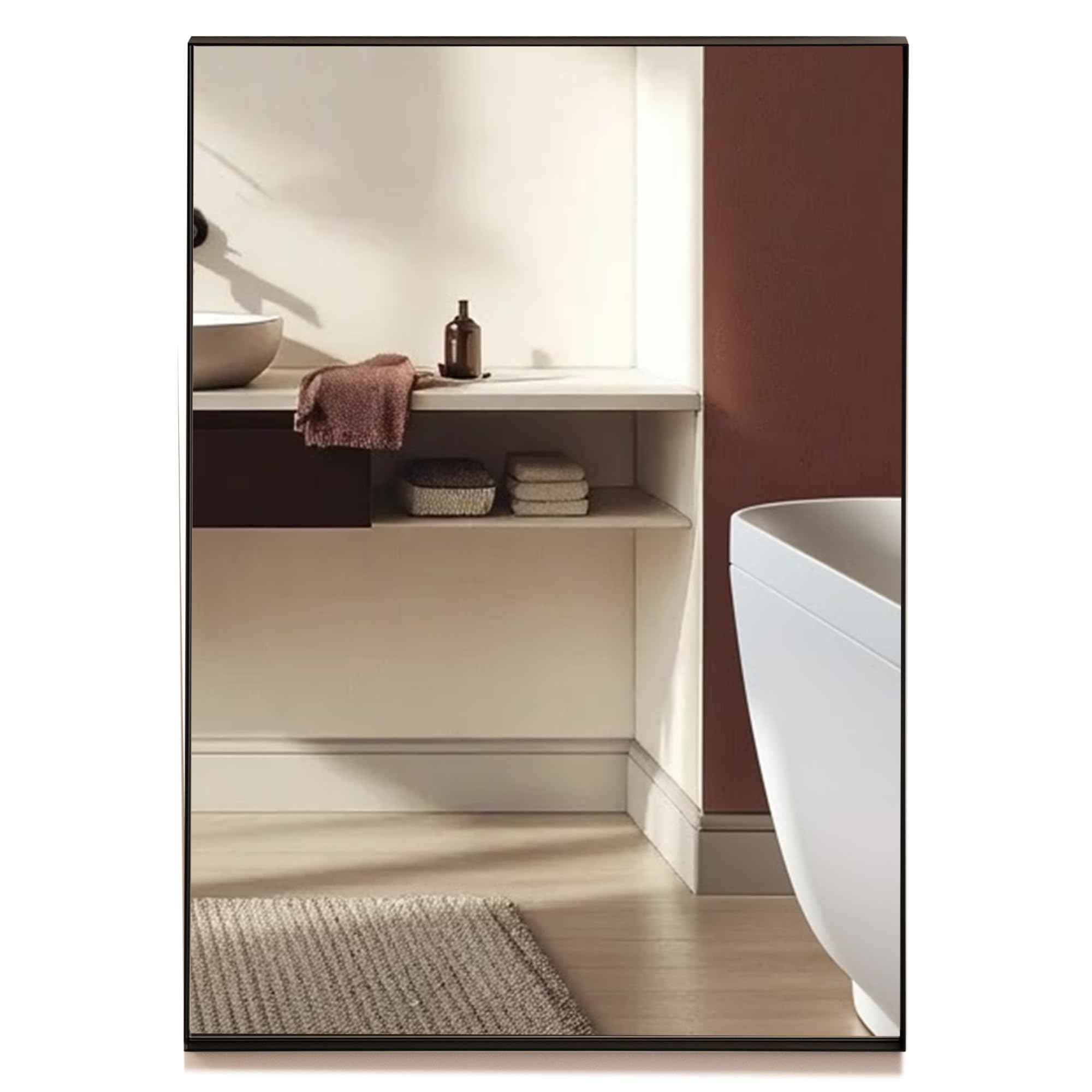 Neue Design Mood® Premium Rectangular Bathroom Mirror Black Framed Wall Mounted, Recessed Rectangle Frame Modern & Stylish (50cm x 40cm)