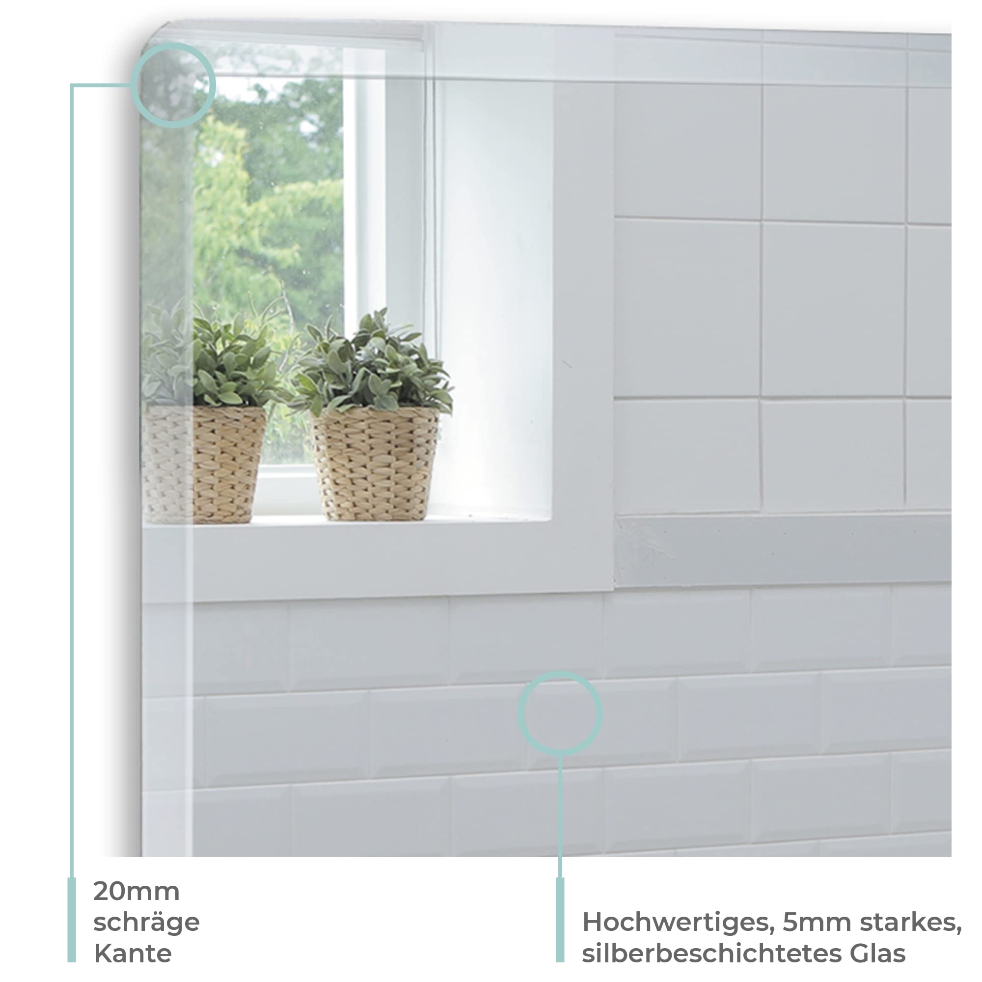 Rechteckiger Spiegel Dieser Spiegel ist eine stilvolle Ergänzung für jedes Badezimmer und ist sehr beliebt. Er hat eine einfache rechteckige Form und verfügt über eine attraktive 20 mm abgeschrägte Kante. Der Spiegel wird mit zwei stabilen Kreuzklammern an der Wand befestigt. Diese sind flache Klammern, die eine nähere Anbringung an der Wand erlauben, mit einem nur 8 mm grossem Abstand. Montageanleitung (möglicherweise nicht in deutscher Sprache) wird bei jedem Spiegel mitgeliefert. Abmessungen Höhe: 60 cm. Breite: 45cm. Gewicht: 3 kg.