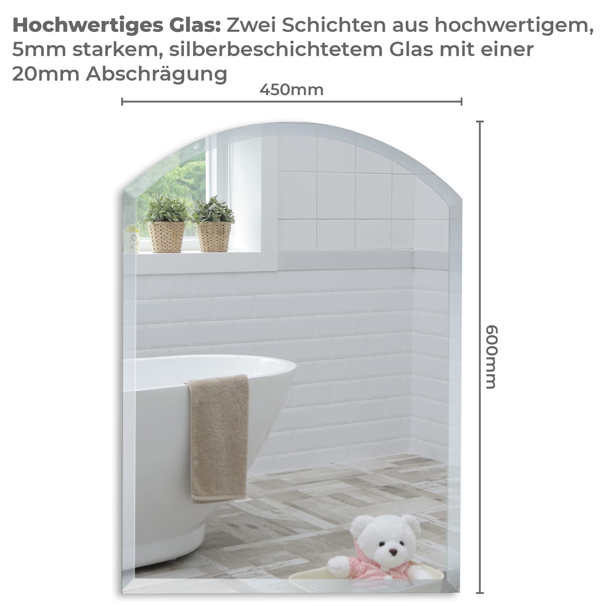 Neue Design Schöner gewölbter Badezimmerspiegel, modern und stylish, mit abgerundeten Kanten, Wandbefestigung, Badspiegel, Wandspiegel, abgeschrägte Kante, Spiegel 60cm x 45cm