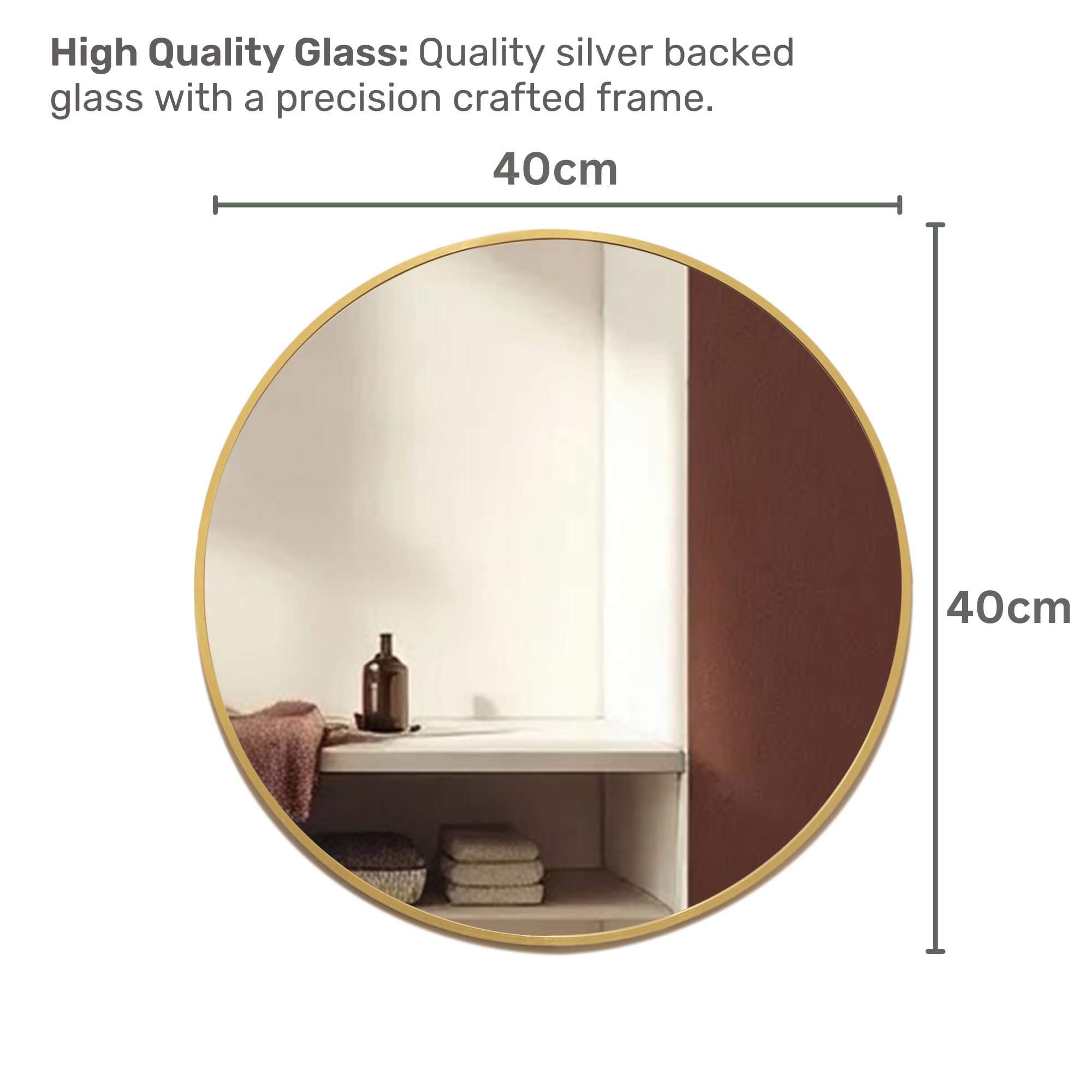 Neue Design Mood® Premium Round Bathroom Mirror Gold Framed Wall Mounted, Circle Frame Modern & Stylish (40cm x 40cm)
