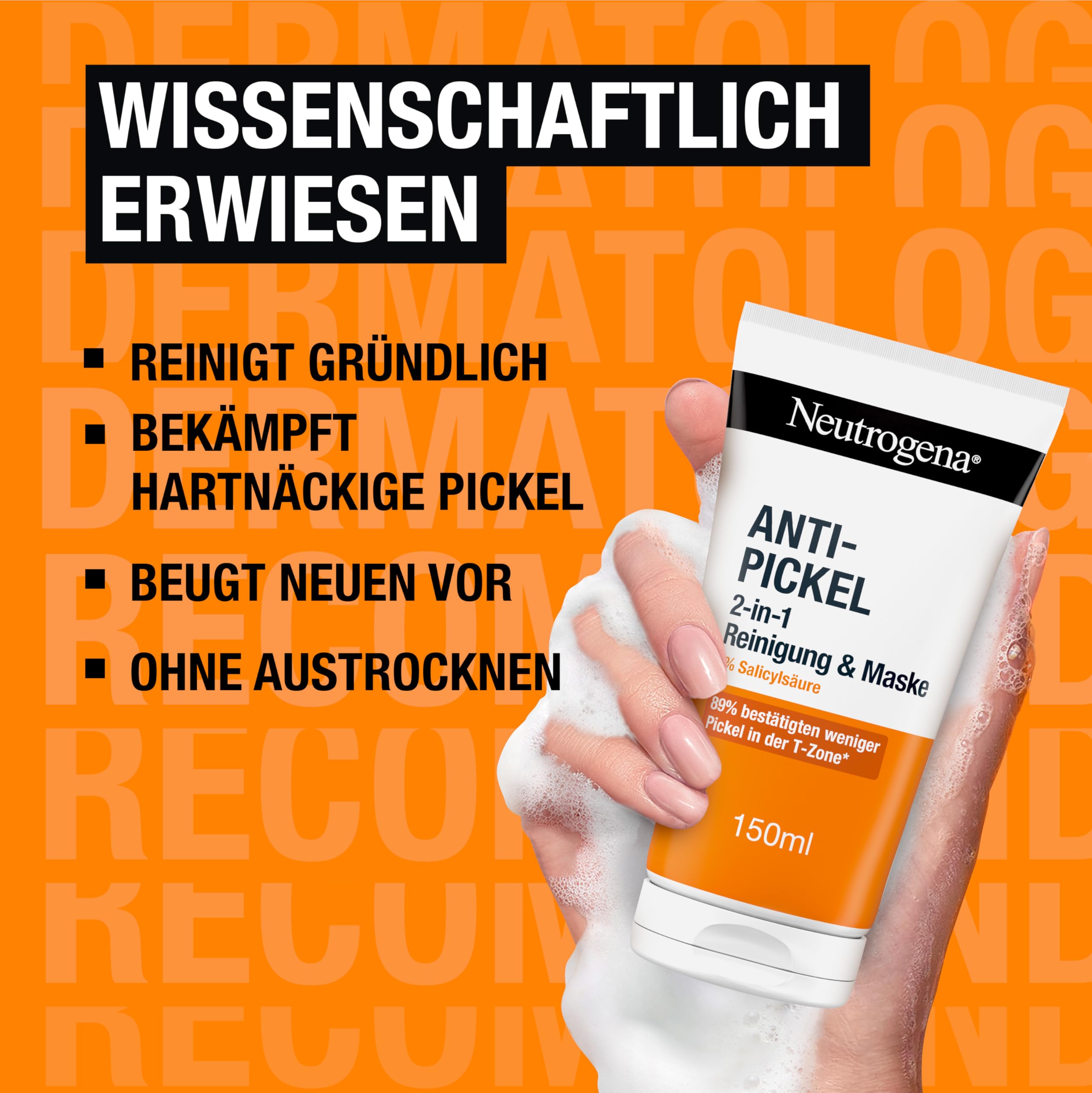 Neutrogena Anti-Pickel 2-in-1 Reinigung & Maske – Klaerende Gesichtsreinigung mit 1 % Salicylsaeure & Glycerin (150 ml)