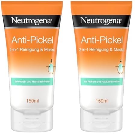 Die Neutrogena Anti-Pickel 2in1 Reinigung & Maske ist eine effektive Gesichtspflege gegen Unreinheiten, die Reinigung und intensive Maskenpflege in einem Produkt vereint. Die speziell entwickelte Formel mit 1 % Salicylsaeure (BHA) dringt tief in die Poren ein, loest Verunreinigungen und hilft, Pickel, Mitesser und verstopfte Poren sichtbar zu reduzieren.