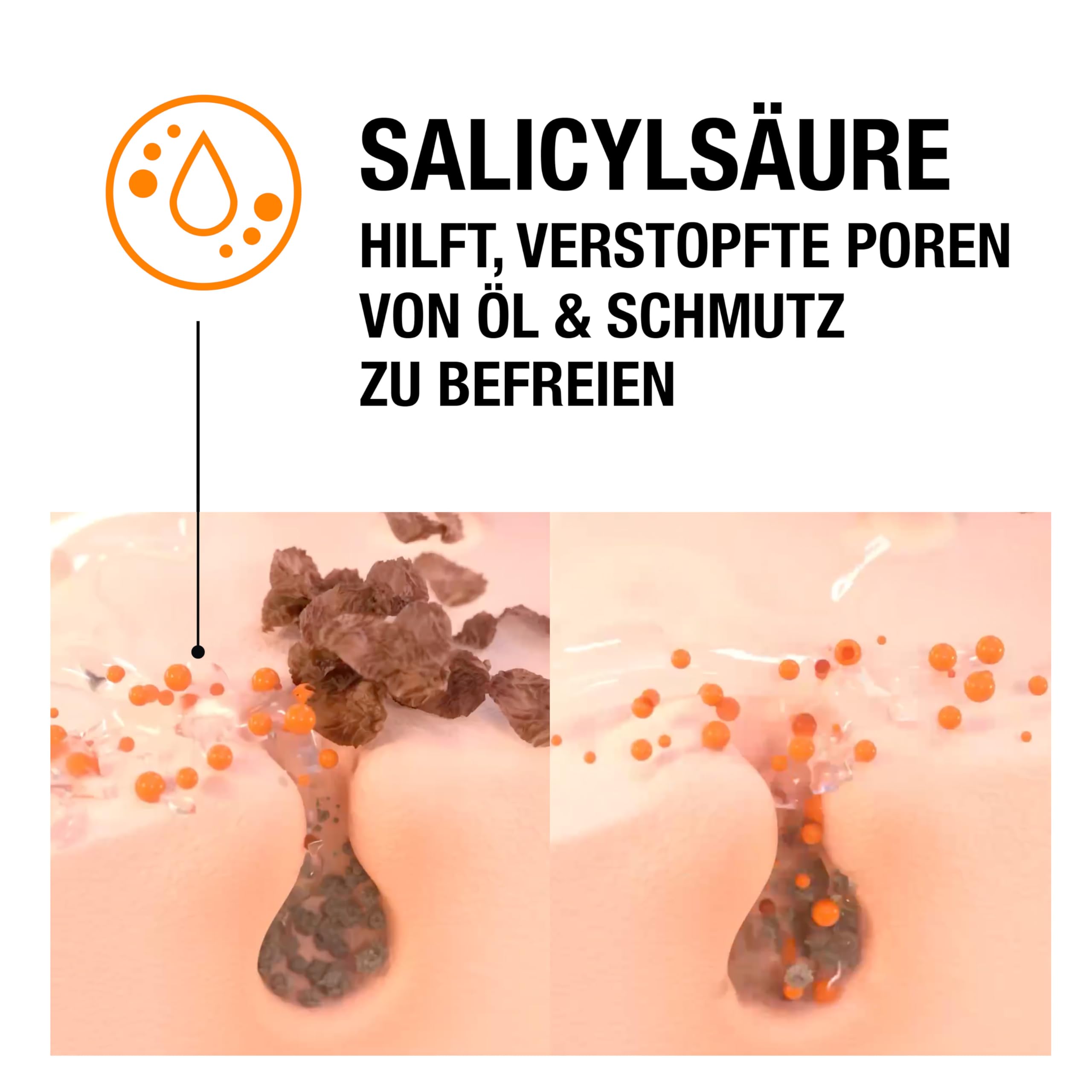 Dringt porentief ein, hilft, Talg und Verunreinigungen zu entfernen und beugt Pickeln sowie Mitessern vor.
