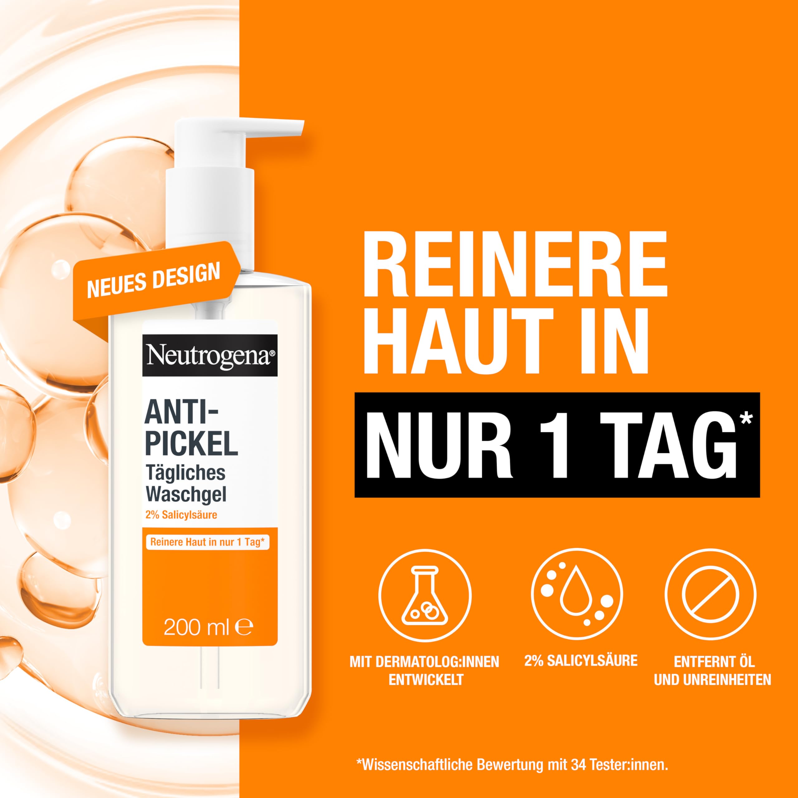 Die Neutrogena Anti-Pickel 2-in-1 Reinigung und Maske kombiniert zwei wirkungsvolle Pflegefunktionen in einem praktischen Produkt: eine tiefenreinigende Gesichtsreinigung und eine intensiv klaerende Maske – ideal fuer unreine und zu Pickeln neigende Haut. Die einzigartige Formel mit 1 % Salicylsaeure (BHA) dringt tief in die Poren ein, loest Talg sowie Verunreinigungen und kann so Mitesser, Pickel und Porenverstopfungen sichtbar reduzieren.