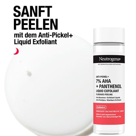 Neutrogena Anti-Pickel+ Liquid Exfoliant Gesichtspflege, flüssiges Peeling mit 7Prozent AHA + Panthenol 125ml entfernt sanft abgestorbene Hautzellen und überschüssigen Talg