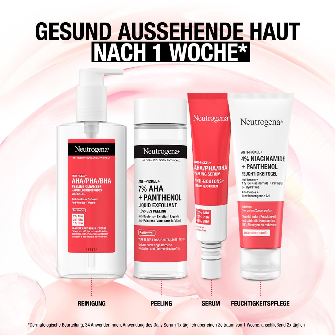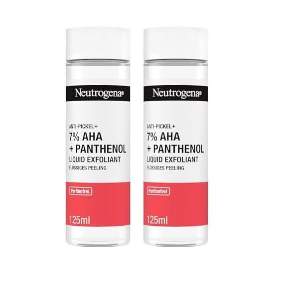 Neutrogena Anti-Pickel+ Liquid Exfoliant flüssiges Peeling mit 7% AHA + Panthenol (125ml) entfernt sanft abgestorbene Hautzellen & überschüssigen Talg (Packung mit 2)