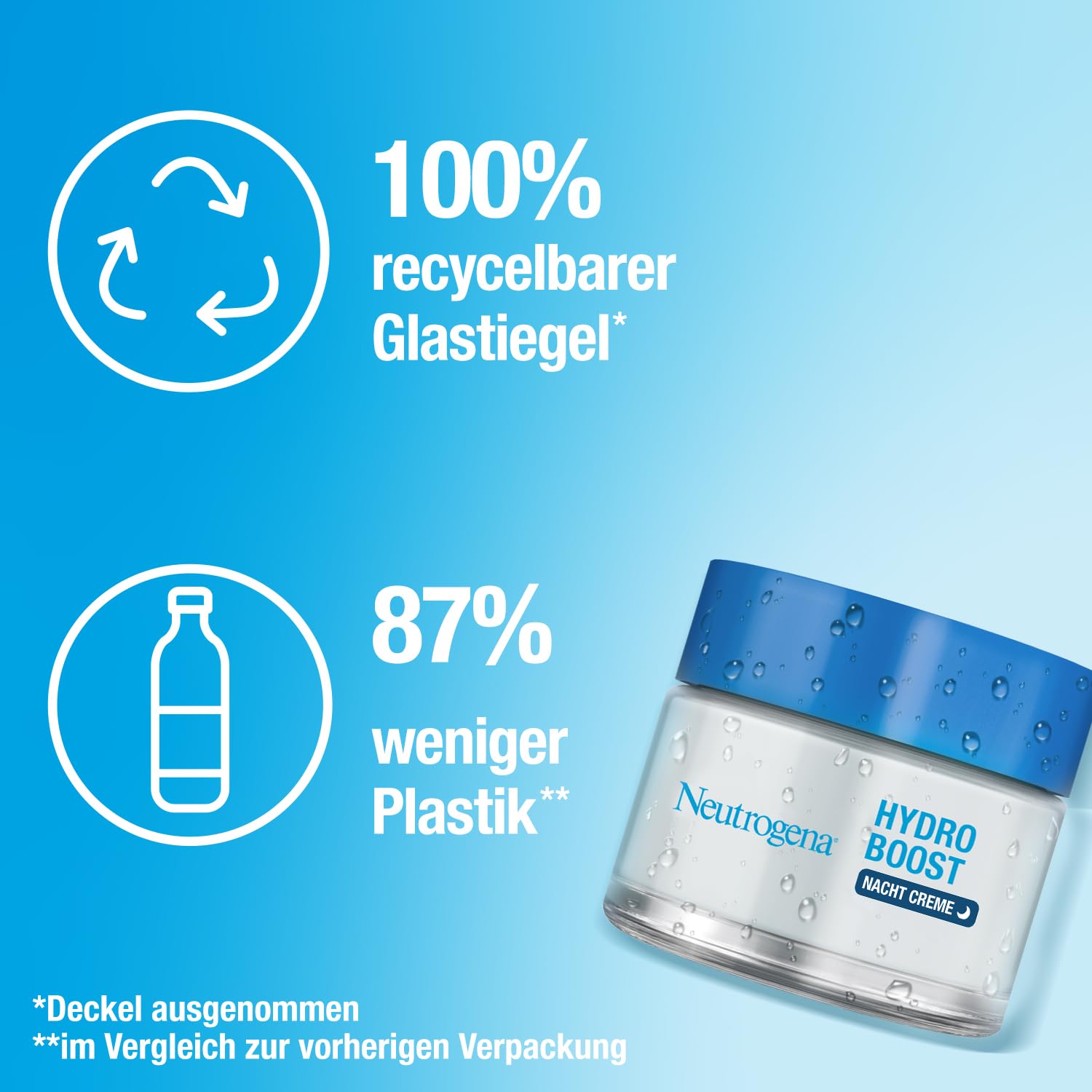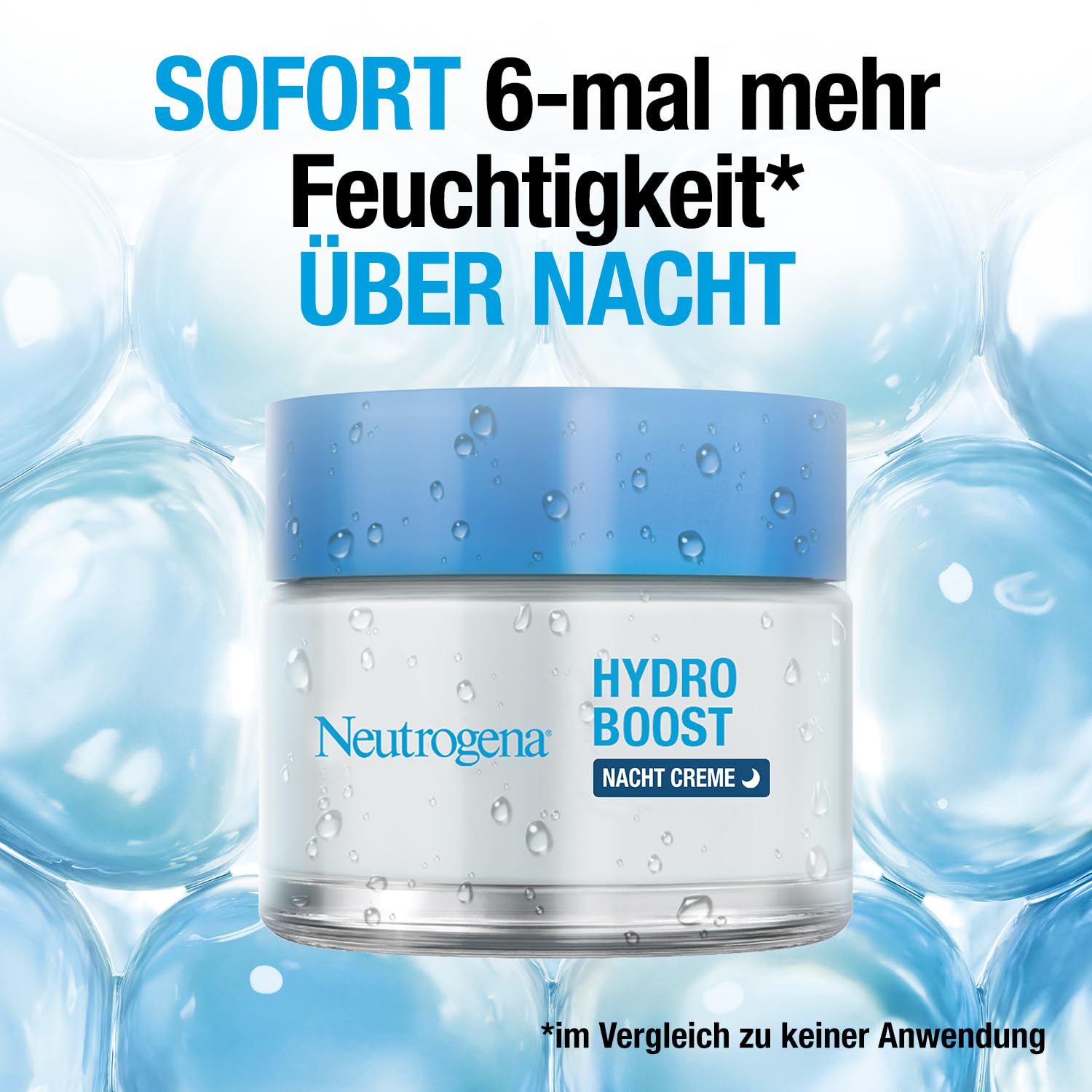Neutrogena Hydro Boost Nachtcreme (50ml) – Regenerierende Gesichtspflege mit purer Hyaluronsäure – Intensive Feuchtigkeitscreme für glatte & erholte Haut