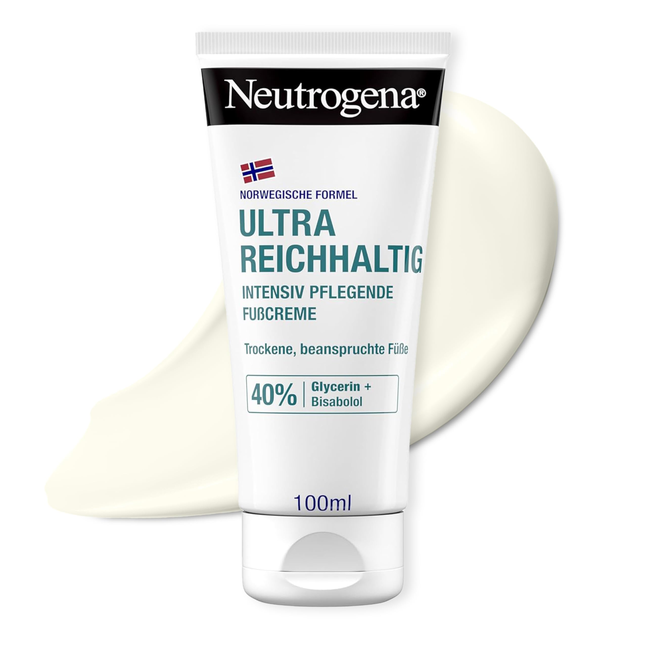 Neutrogena Ultra reichhaltige Fußcreme, nicht fettende Fußpflege Creme mit 40Prozent Glycerin + Bisabolol, schnell einziehende Feuchtigkeitscreme für trockene und beanspruchte Füße 100 ml