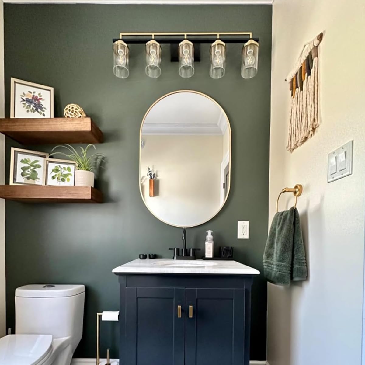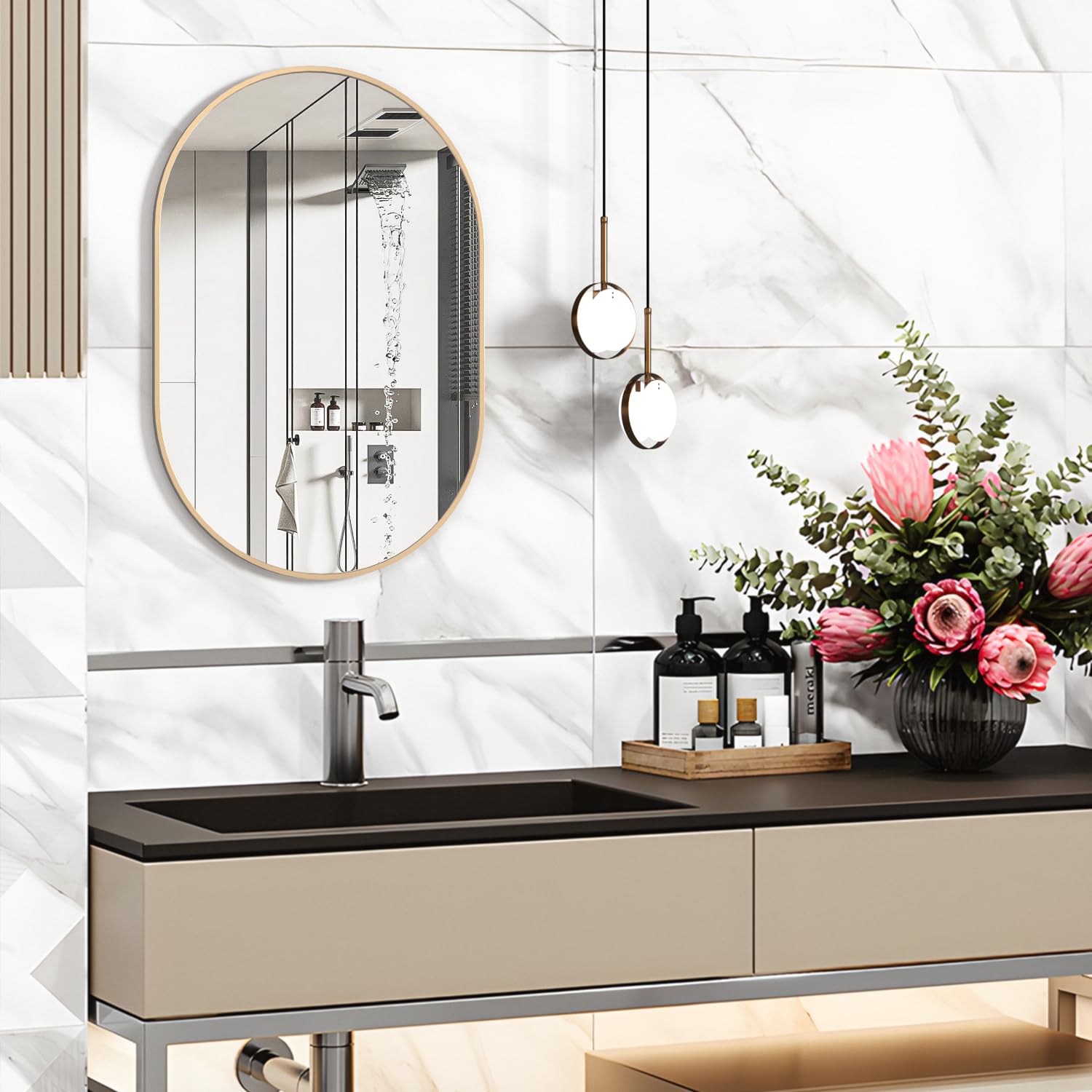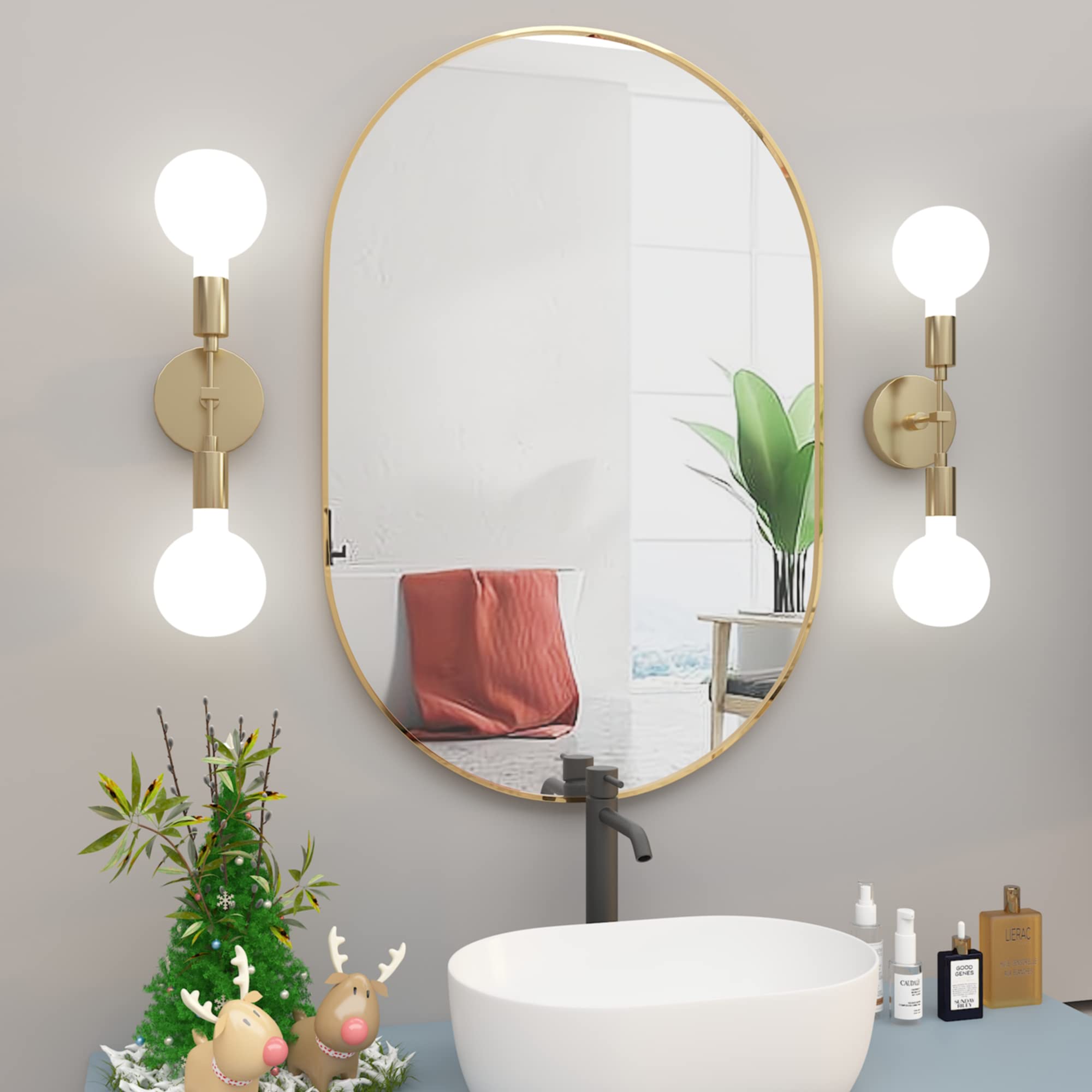 NEUWEABY Oval Badspiegel Ovale Wandspiegel für über dem Waschbecken, 50x75 cm Gold Pillen Spiegel Capsule Wandspiegel, Moderner Spiegel mit Metallrahmen für Wanddekoration